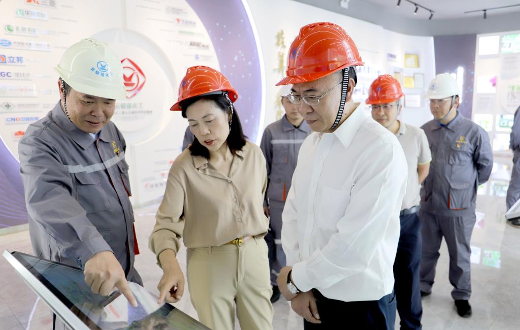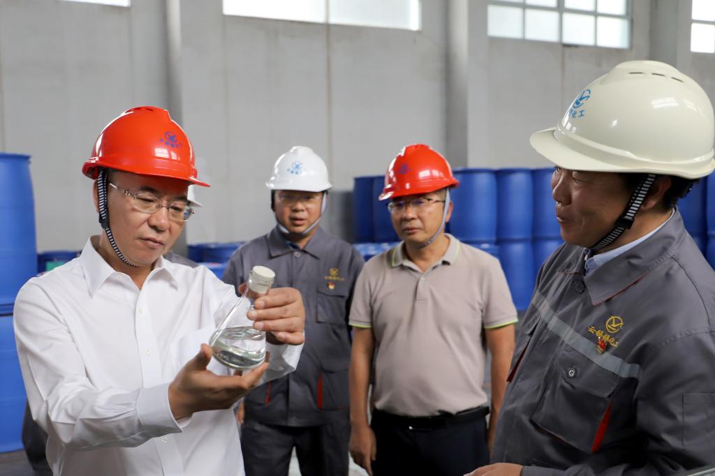 在錫化工有機(jī)錫生產(chǎn)基地,孫勇實(shí)地查看了丁基錫生產(chǎn)線、丁基錫自動(dòng)控制室、甲基錫產(chǎn)品庫(kù)房及“化合錫世界”綜合展廳,詳細(xì)詢問(wèn)錫化工生產(chǎn)經(jīng)營(yíng)情況、產(chǎn)品種類、產(chǎn)品用途、市場(chǎng)優(yōu)勢(shì)及黨建工作開(kāi)展情況。
