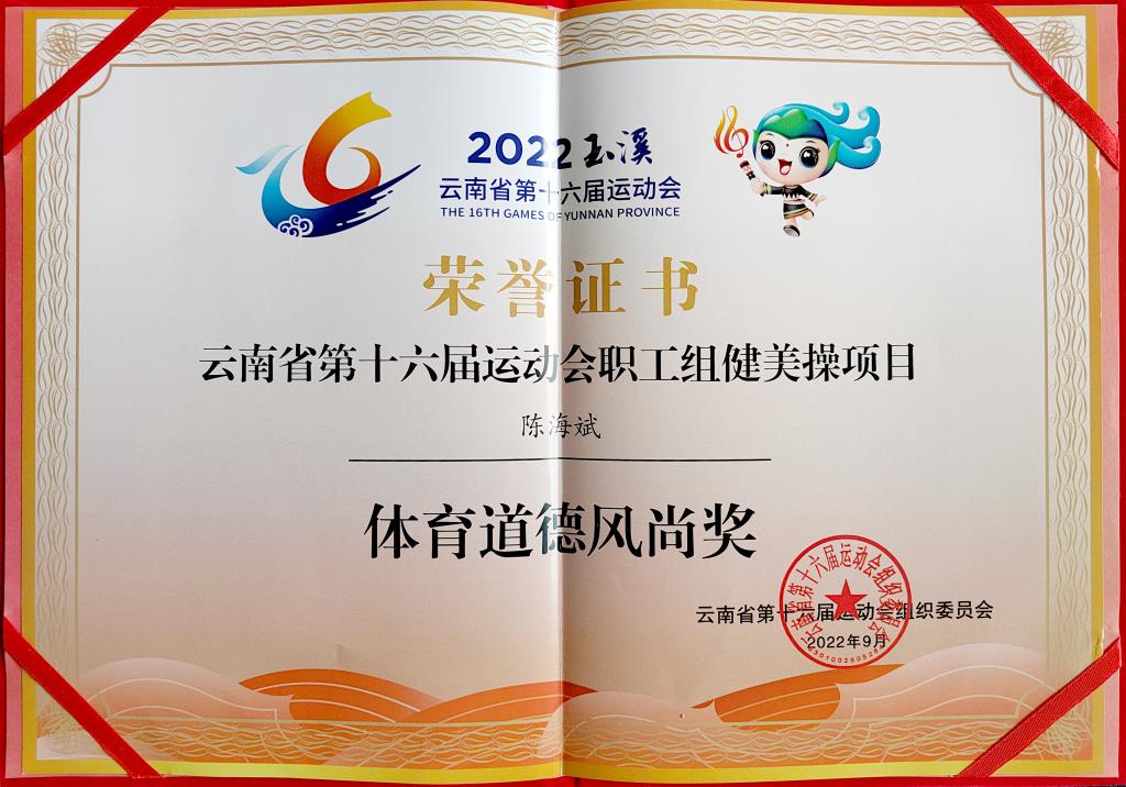 本次健身操比賽因受新冠肺炎疫情影響采取了線上賽的方式進行,錄制參賽作品時,運動員們頭頂烈日、一氣呵成,將力度與美感完美結合,配合默契高質量完成兩個項目所有動作,展現(xiàn)出云錫頑強拼搏、積極進取的風采。經(jīng)過裁判組嚴格評審,云錫控股公司健身操代表隊參賽的規(guī)定套路《飛躍的心》獲第六名、自編套路民族健身操《錫山樂作》獲第五名;運動員陳海斌獲個人“體育道德風尚獎”,為云錫控股公司健身操運動贏得了榮譽。