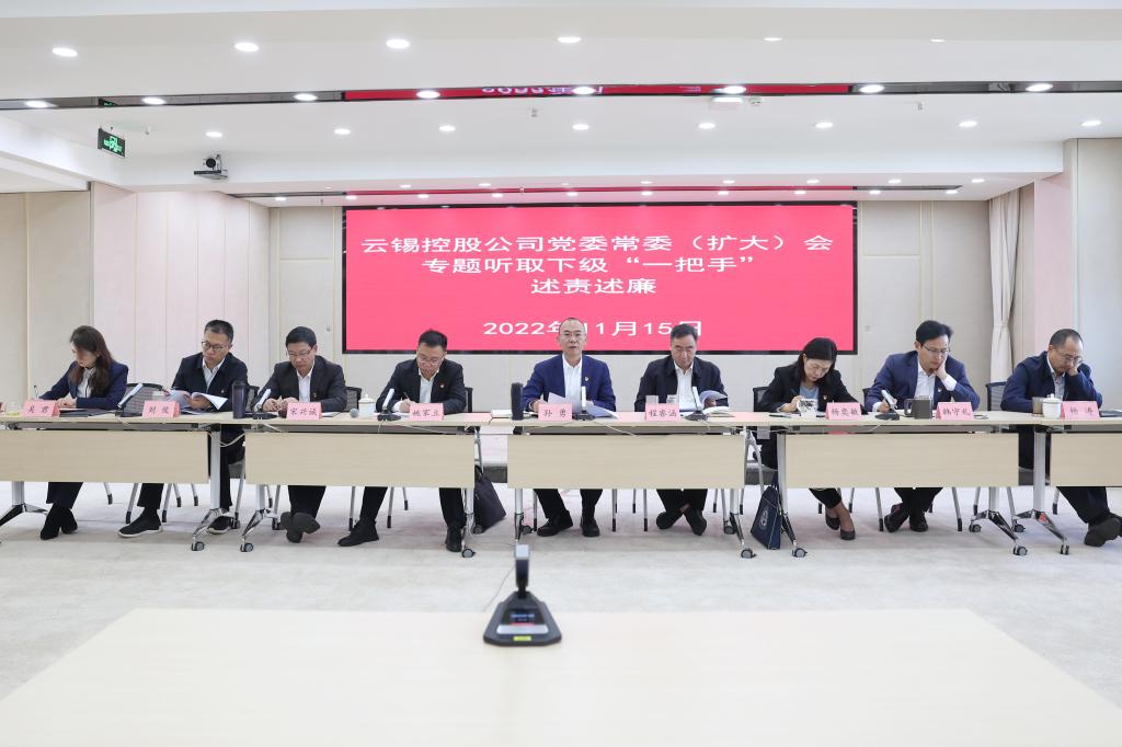 11月15日,云錫控股公司黨委常委會召開(擴大)會議,開展下級“一把手”述責述廉、接受評議工作??毓晒军h委書記、董事長孫勇主持會議并講話。