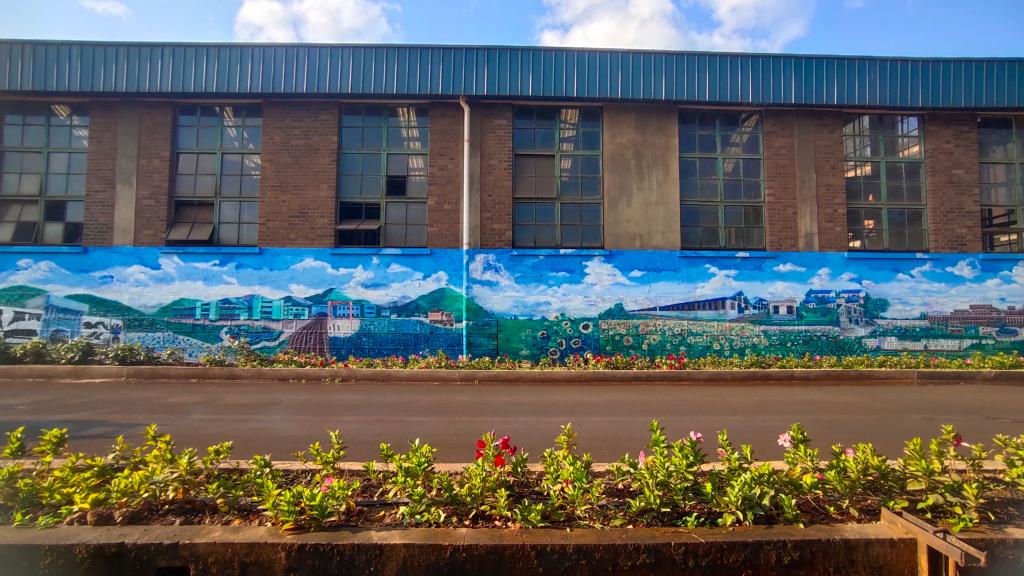 綠樹成蔭的小路,成片的格桑花,爭相怒放的金黃小菊花,充滿寫實浪漫的山水畫,大屯錫礦選礦車間以“綠水青山就是金山銀山”的發(fā)展理念打造花園式工廠,用人與自然的和諧相處詮釋了發(fā)展與生態(tài)的關系,組織職工親手繪就了“錫強有我”文化墻,講述了云錫發(fā)展故事。