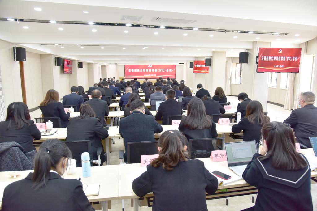 1月9日,控股公司黨委在昆明總部14樓會議室召開常委(擴大)會,開展2022年度所屬單位黨委書記述職評議考核??毓晒军h委書記、董事長孫勇主持會議。