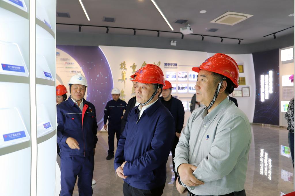 馬天毅一行觀看了錫化工《入廠安全告知》,參觀了“化合錫世界”綜合展廳,充分肯定了錫化工改革發(fā)展成效。