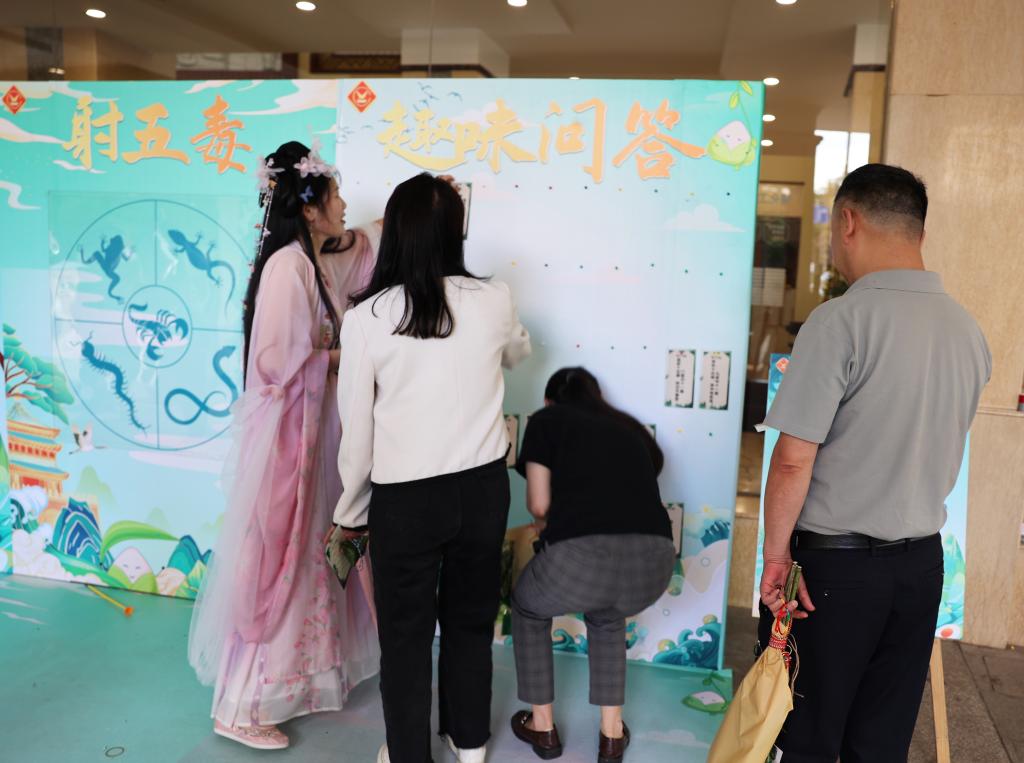 屈原投汨羅江前的絕筆之作是?“這個問題我知道,屈原投汨羅江前的絕筆之作是《懷沙》”活動現(xiàn)場,大家爭先恐后的舉手搶答,本次知識競賽的題目包含端午節(jié)風俗習慣、節(jié)日相關的歇后語、屈原經(jīng)典名句等,現(xiàn)場氣氛熱烈,大家在歡聲笑語中學知識、展風采。