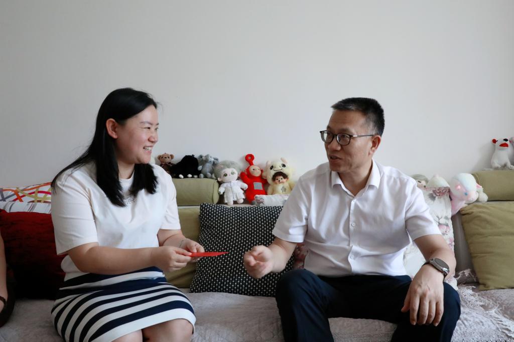 控股公司黨委常委、組織人力部部長吳君走訪慰問銅業(yè)分公司困難黨員張南輝(朱晗/攝)
