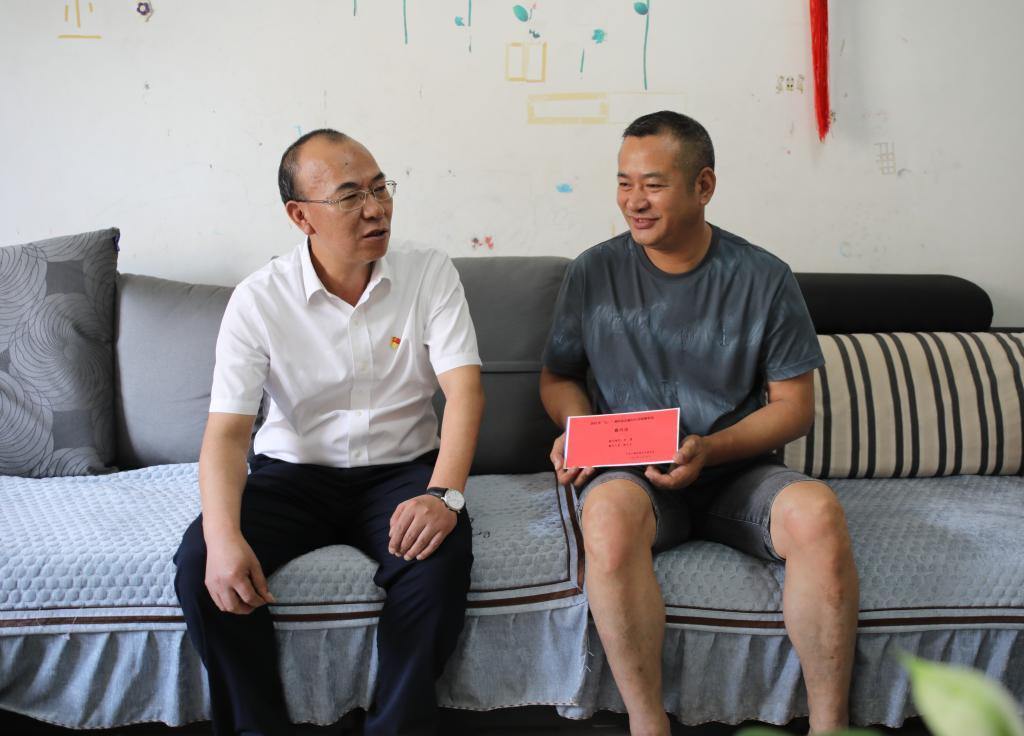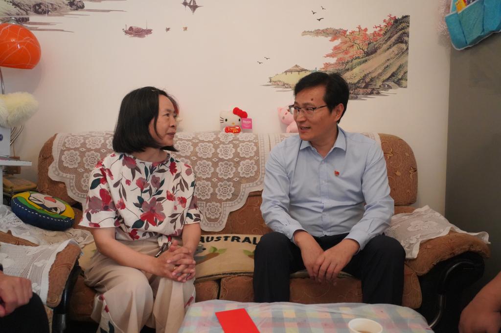 控股公司黨委副書記、副董事長、總經(jīng)理韓守禮走訪慰問錫都實業(yè)公司困難黨員陳美華(孫載通/攝)