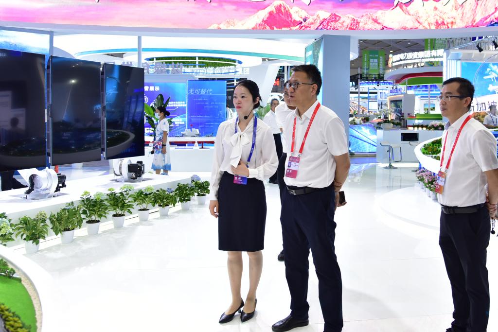 控股公司副總經(jīng)理李季在云錫展廳了解參展、布展情況。