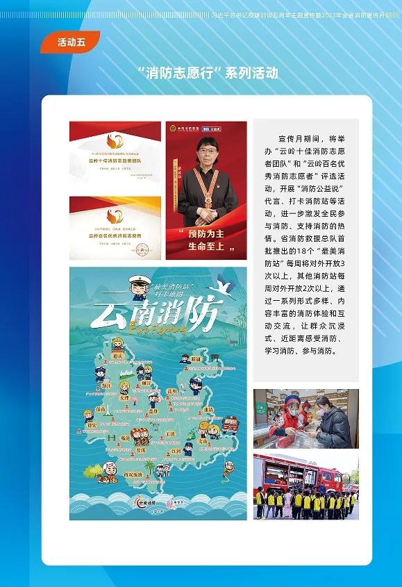 宣傳月期間,將舉辦“云嶺十佳消防志愿者團(tuán)隊(duì)”和“云嶺百名優(yōu)秀消防志愿者”評(píng)選活動(dòng),開展“消防公益說”代言、打卡消防站等活動(dòng),進(jìn)一步激發(fā)全民參與消防、支持消防的熱情??傟?duì)首批推出的18個(gè)“最美消防站”每周將對(duì)外開放3次以上,其他消防站每周對(duì)外開放2次以上,通過一系列形式多樣、內(nèi)容豐富的消防體驗(yàn)和互動(dòng)交流,讓群眾沉浸式學(xué)習(xí)消防知識(shí),近距離感受消防、學(xué)習(xí)消防、參與消防。