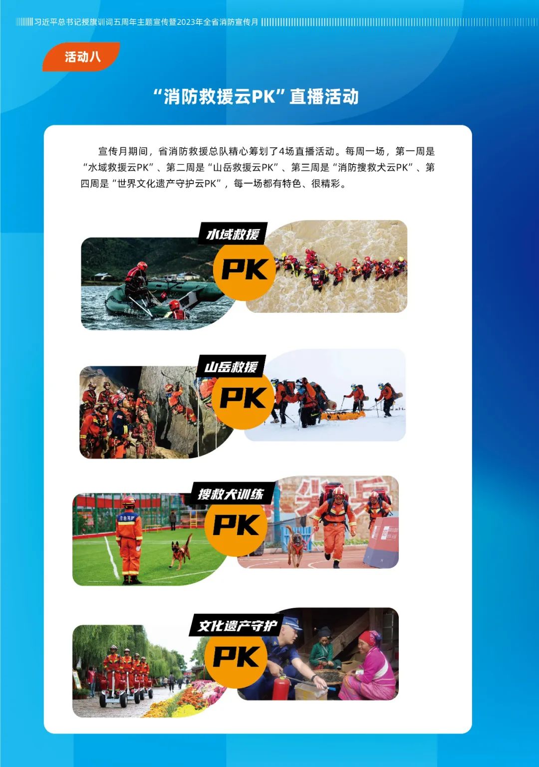 宣傳月期間,省消防救援總隊(duì)精心籌劃了4場(chǎng)直播活動(dòng),每周一場(chǎng),第一周是“水域救援云PK”、第二周是“山岳救援云PK”、第三周是“消防搜救犬云PK”、第四周是“世界文化遺產(chǎn)守護(hù)云PK”,每一場(chǎng)都有特色、很精彩。