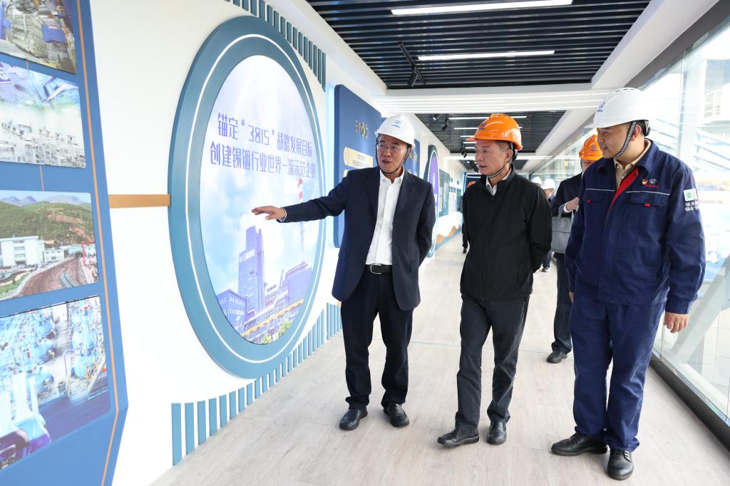 會(huì)前,黃長庚參觀了錫冶煉智慧運(yùn)營中心、熔煉車間頂吹爐主控室、精煉車間直線澆鑄系統(tǒng)、5G智能倉儲(chǔ)和錫文化長廊,詳細(xì)了解云錫全產(chǎn)業(yè)鏈中的冶煉環(huán)節(jié)和云錫在采選冶深等領(lǐng)域取得的數(shù)字化、智能化建設(shè)成果。