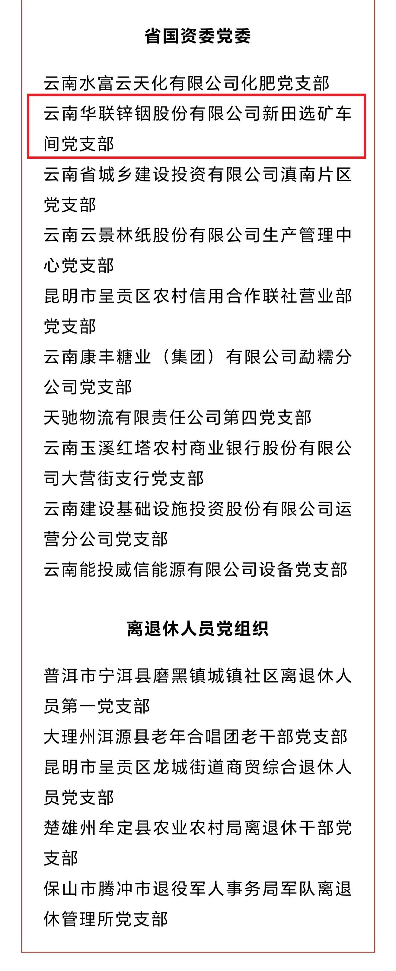 近日,中共云南省委組織部發(fā)布了《關(guān)于命名2023年度“云嶺先鋒紅旗黨支部”的決定》,華聯(lián)鋅銦公司新田選礦車(chē)間黨支部榜上有名。