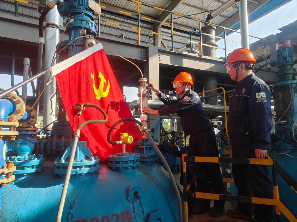 黨建業(yè)務雙融雙促,打造“實干型”班組。中間體班組嚴格落實“黨建帶班建,力量下沉到班組,作用顯現(xiàn)在一線”的工作思路,將6名共產(chǎn)黨員分布在班組重要崗位,把黨小組建在班組,激活“黨小組+班組”細胞,以“八條措施”“四項目”“隊崗區(qū)”建設為抓手,選配政治功能強、綜合素質(zhì)好、執(zhí)行能力強、示范帶動好的黨員骨干帶頭負責項目,實施“新產(chǎn)品開發(fā)”“降本增效”“產(chǎn)品提質(zhì)增效”項目,在新產(chǎn)品中試過程中,班組黨員主動認領工作任務,學習新知識、新工藝,在工作中搶著干,比著干,輪番作業(yè),既保證了當期生產(chǎn)任務不受影響,又完成了新產(chǎn)品中試工作,黨員在生產(chǎn)經(jīng)營活動中的先鋒模范作用不斷顯現(xiàn),彰顯了“平時工作看得出,關鍵時刻站得出,緊急關頭豁得出”的黨員本色。