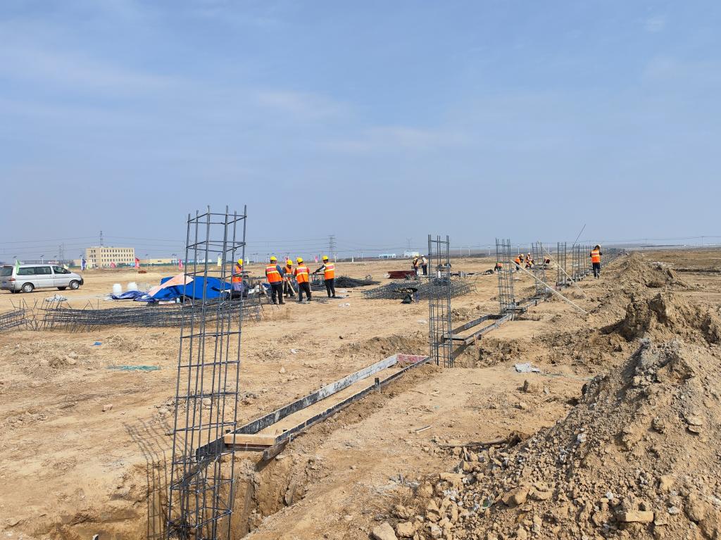 項目總承包單位云錫建設(shè)集團高度重視,以項目建設(shè)“高標(biāo)準(zhǔn)”為核心理念,以項目管理“嚴(yán)要求”為主線,以工程進度、安全、質(zhì)量、文明施工為重點,在錫都實業(yè)公司主要領(lǐng)導(dǎo)的親自組織推動下,聚焦項目施工團隊組建、明確項目施工責(zé)任人、壓緊壓實設(shè)計、施工責(zé)任;先后深入考察了解當(dāng)?shù)亟ㄖ牧?、勞?wù)用工等市場行情,與26家材料供應(yīng)商、勞務(wù)分包單位接洽摸底,為下一步材料采供、勞務(wù)分包打好基礎(chǔ);與設(shè)計單位山東濱州設(shè)計院積極溝通對接,有序推進項目施工圖設(shè)計;有序組織開展項目建設(shè)前期“三通一平”工作。截至4月10日已完成項目用地平整9000平方米,廠區(qū)四周1400米圍墻土建施工及圍擋安裝,廠區(qū)正門(臨時)基礎(chǔ)開挖、澆灌、鋼結(jié)構(gòu)組立,綜合樓區(qū)域雨水溝、化糞池基礎(chǔ)開挖,雨水井砌筑,以及區(qū)域平整壓實、澆灌地坪1500平方米和廠區(qū)用水引入等工程量。