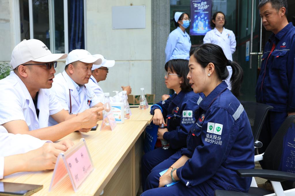 工作人員向職工們發(fā)放職業(yè)病防治宣傳資料,開展職業(yè)病宣傳義診活動(dòng),耳鼻喉科、呼吸科、眼科、腫瘤科等多個(gè)科室醫(yī)生聯(lián)合進(jìn)行現(xiàn)場(chǎng)診治,上門送診,把職工的職業(yè)健康送到心坎上。