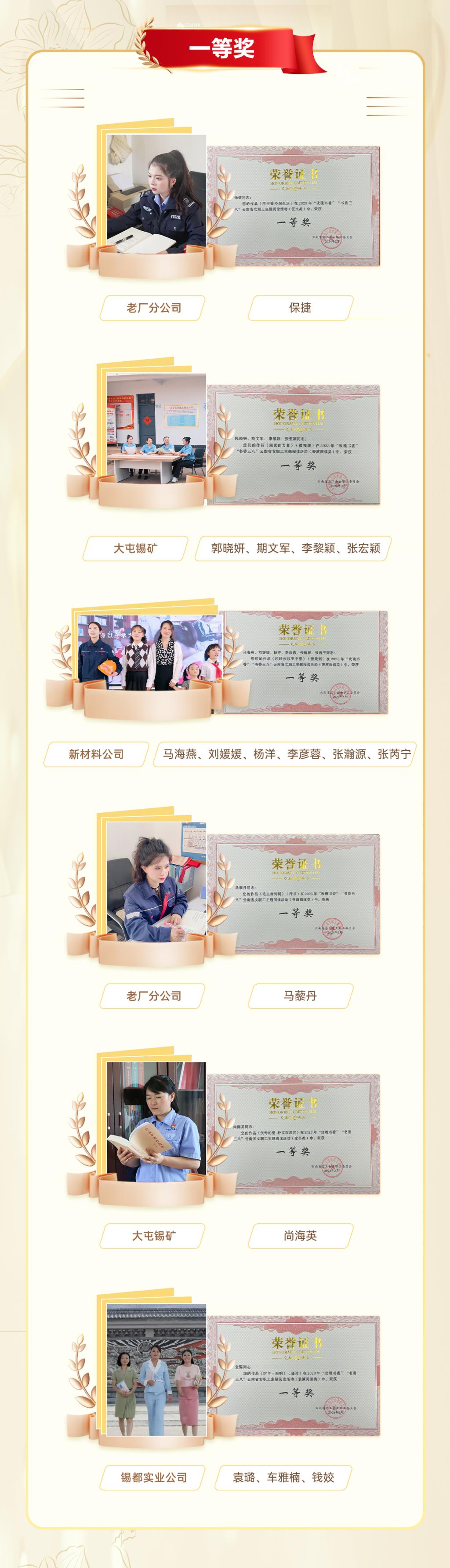 近日,經云南省總工會組織專家評審,2023年“玫瑰書香”“書香三八”女職工主題閱讀活動作品評選結果公布。云錫控股公司工會推薦的58個(件)作品分別獲得主題閱讀活動征文類、家書類、書畫類、表演閱讀類的一、二、三等獎。其中一等獎作品6個(件)、二等獎作品13個(件)、三等獎作品9個(件)、優(yōu)秀獎作品30個(件),云錫控股公司工會獲得優(yōu)秀組織獎。