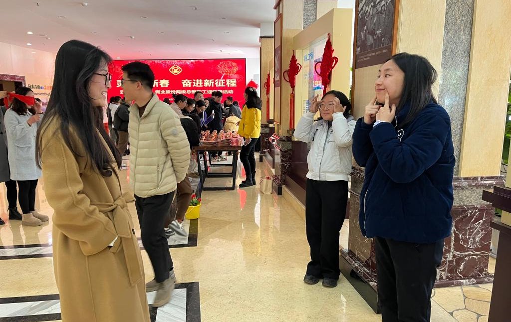 控股公司、錫業(yè)股份兩級(jí)總部工會(huì)開展迎新春趣味活動(dòng),“你比我猜” 妙趣橫生、“盲人插花”別出心裁、“傳遞幸?!?扣人心弦。參與游戲的職工們時(shí)而全神貫注、苦思冥想,時(shí)而擊掌歡呼、手舞足蹈,默契度在一來一往間升溫,歡笑聲在周圍空氣中回蕩,恰似靈動(dòng)音符,奏響新春序曲。紅色的中國結(jié),喜慶的春聯(lián),處處洋溢著濃厚的節(jié)日氛圍。(沈欣橋)