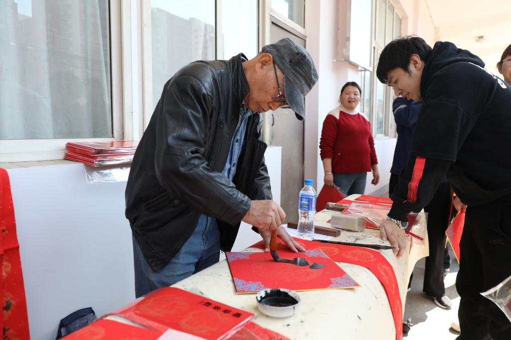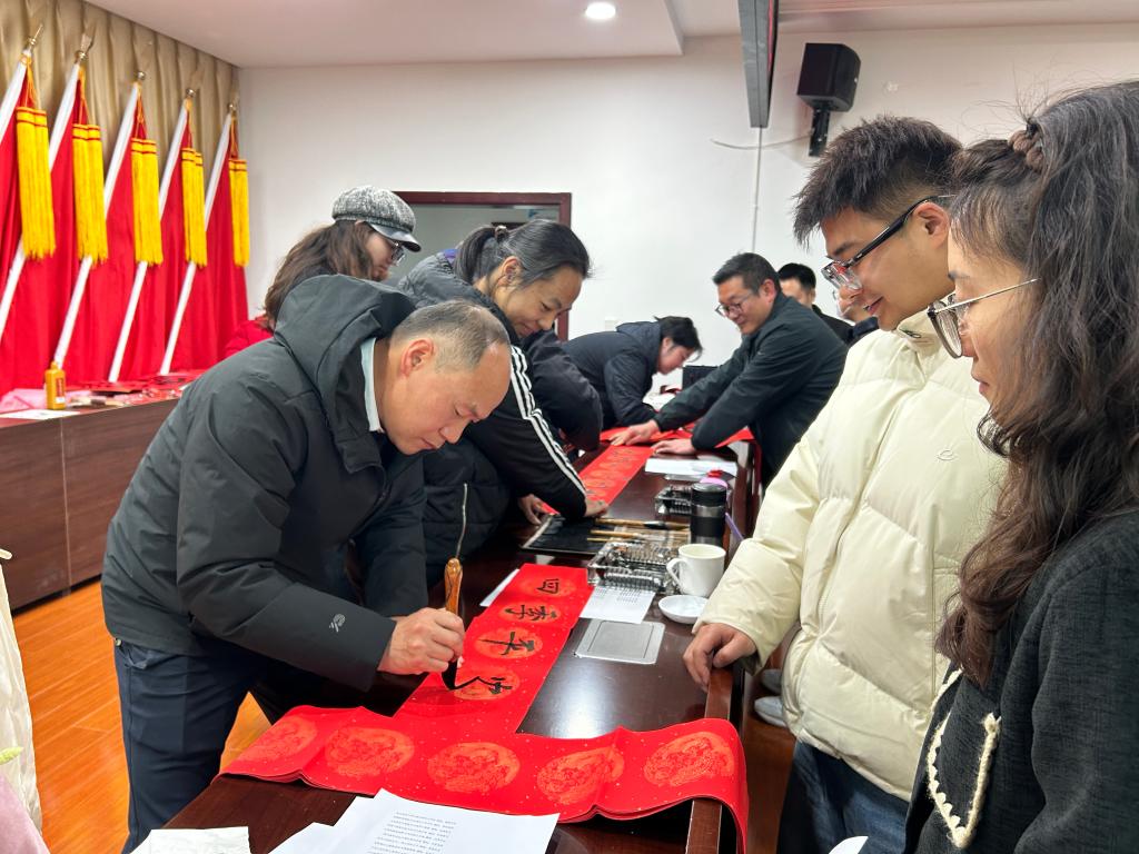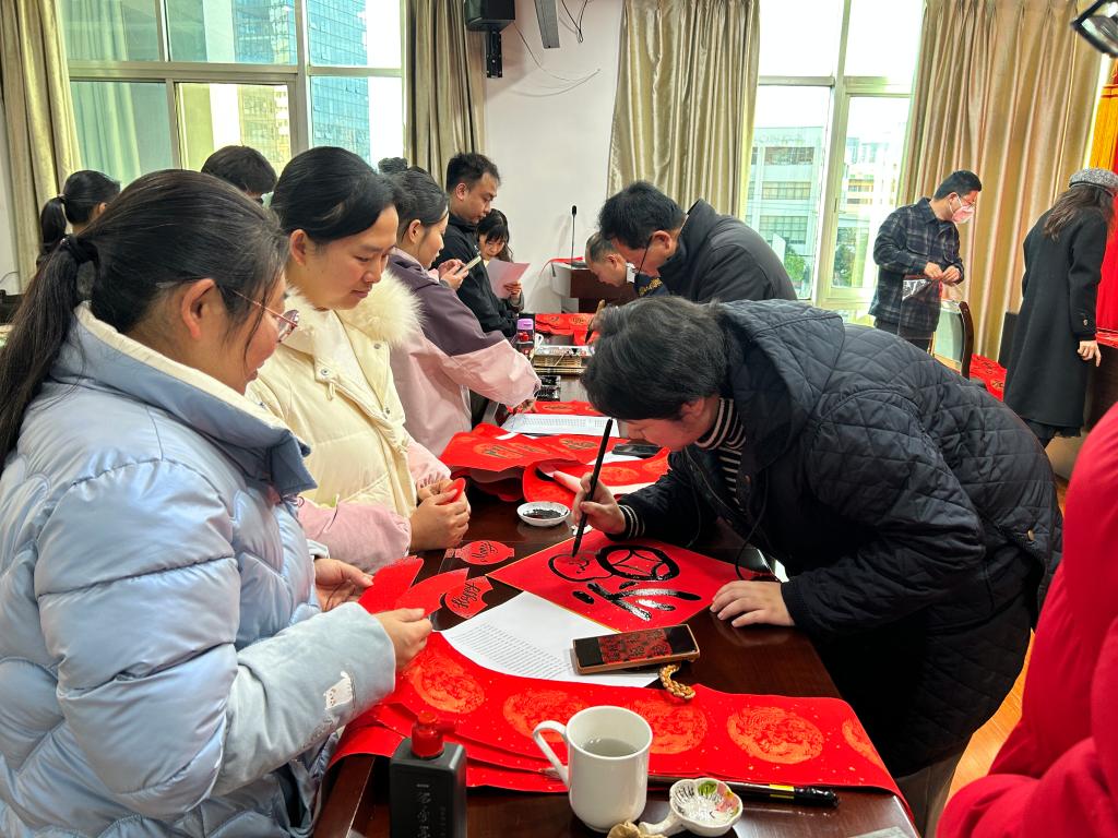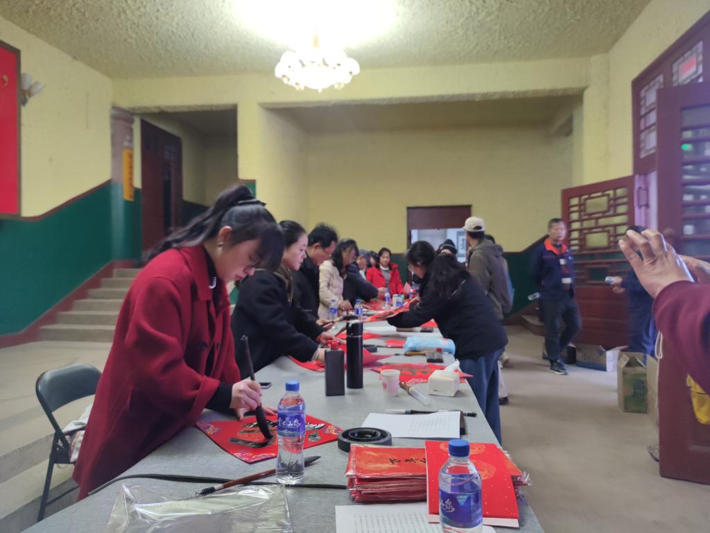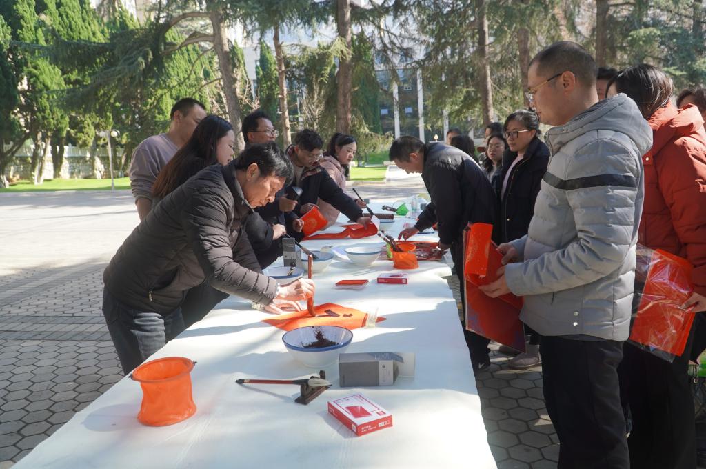 此次活動特別邀請中國書法家協(xié)會會員、紅河州書法家協(xié)會名譽主席段冰,云南省美術(shù)家協(xié)會會員、云錫文聯(lián)副主席楊雪峰等11名書法家進行現(xiàn)場創(chuàng)作。他們鋪開紅紙、凝神聚氣,以精湛的技藝揮毫潑墨、運筆如飛,書寫出一幅幅飽含美好祝福的春聯(lián)和“?!弊郑炎钫\摯的新春祝愿獻給干部職工。