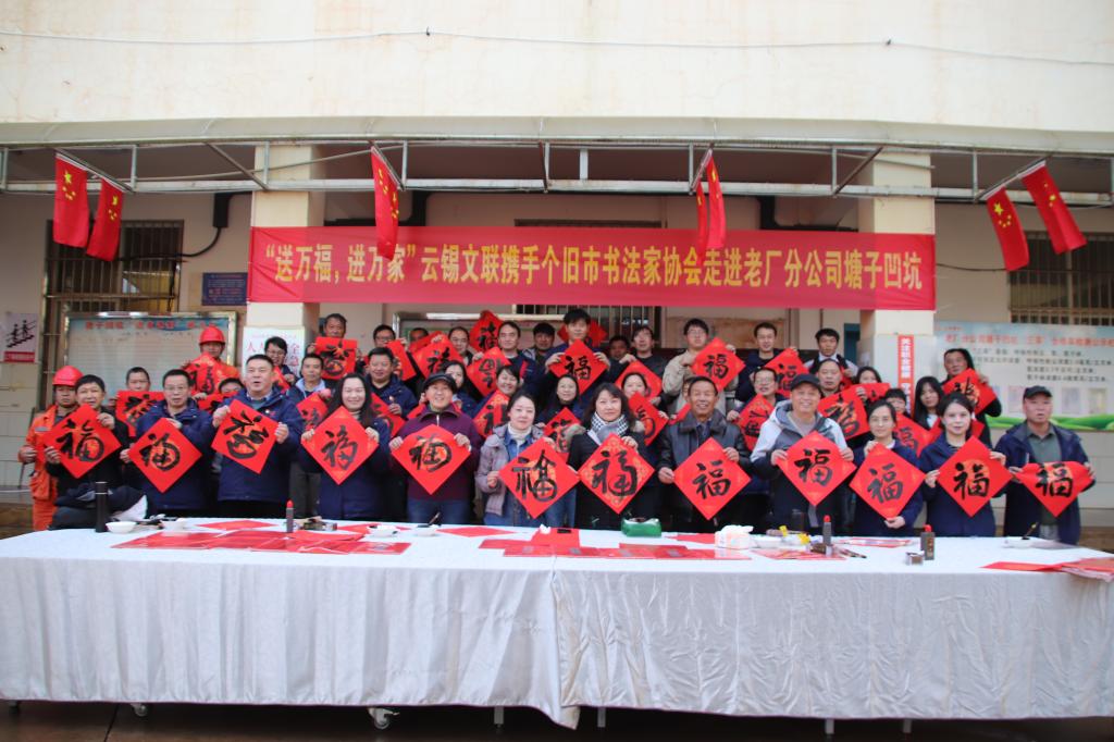 妙筆生花送祥瑞,翰墨留香迎新春。1月14日至24日,云錫文聯(lián)、個舊市書法家協(xié)會聯(lián)合各單位工會開展“送萬福、進萬家”書法公益活動,為廣大干部職工送上新春“年禮”。