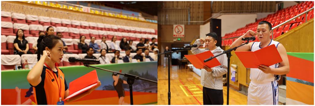 裁判員及運(yùn)動(dòng)員代表宣誓。