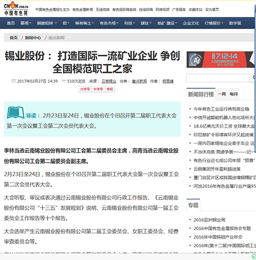 大會選舉產(chǎn)生云南錫業(yè)股份有限公司第二屆工會委員會、女職工委員會、經(jīng)費審查委員會等。