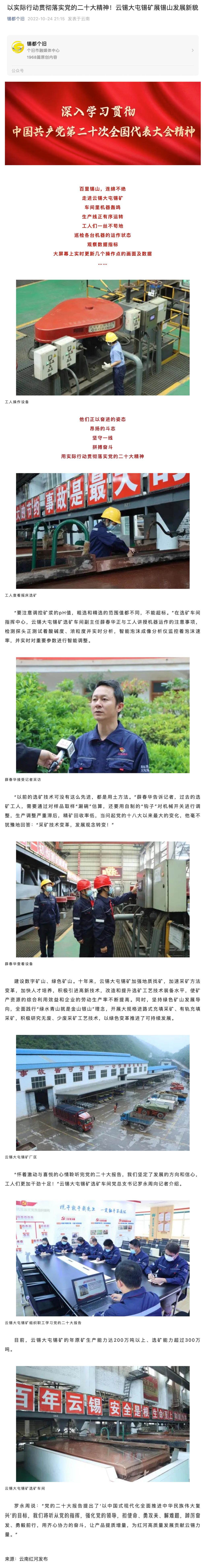 錫都個舊:以實(shí)際行動貫徹落實(shí)黨的二十大精神!云錫大屯錫礦展錫山發(fā)展新貌