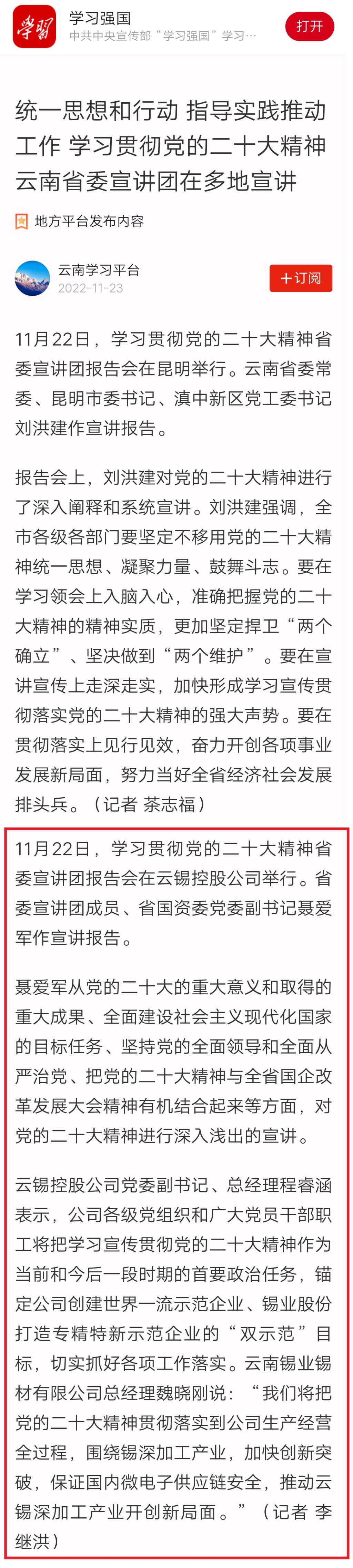 學(xué)習(xí)強(qiáng)國:統(tǒng)一思想和行動 指導(dǎo)實踐推動工作 學(xué)習(xí)貫徹黨的二十大精神云南省委宣講團(tuán)在多地宣講