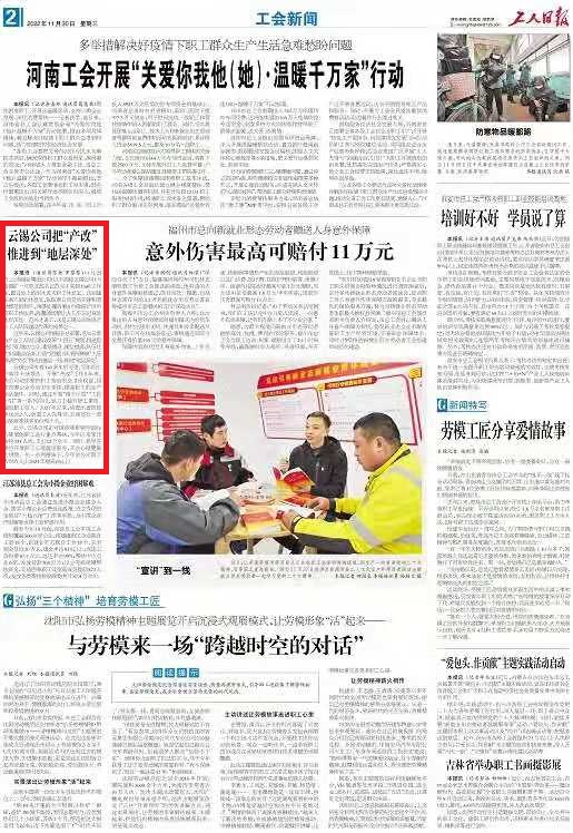 近年來,云錫公司按照全總部署,落實云南省產業(yè)工人隊伍建設改革“十四五”規(guī)劃,推進思想引領、建功立業(yè)、素質提升、地位提高、隊伍壯大5項重點任務,打造“黨建引領、錫寫輝煌”主品牌,把“產改”推進到基層一線,推向“地層深處”。