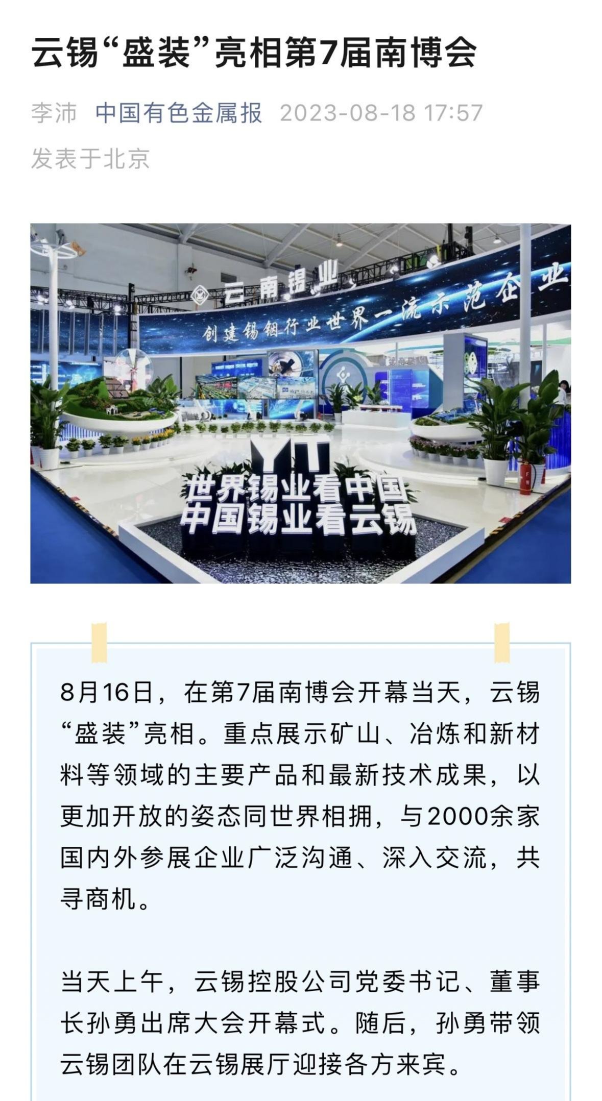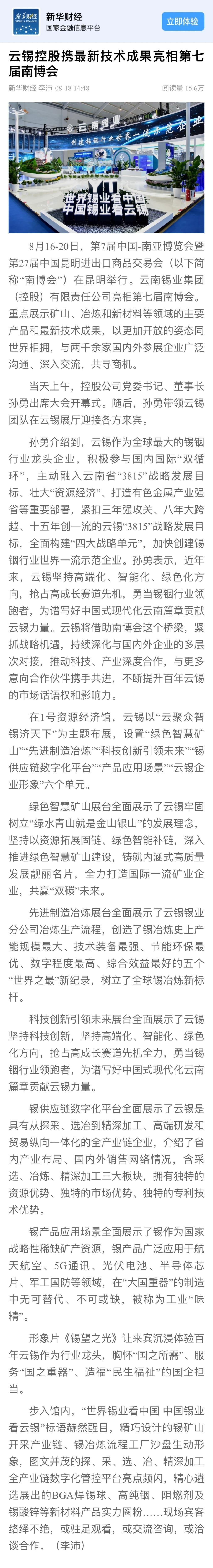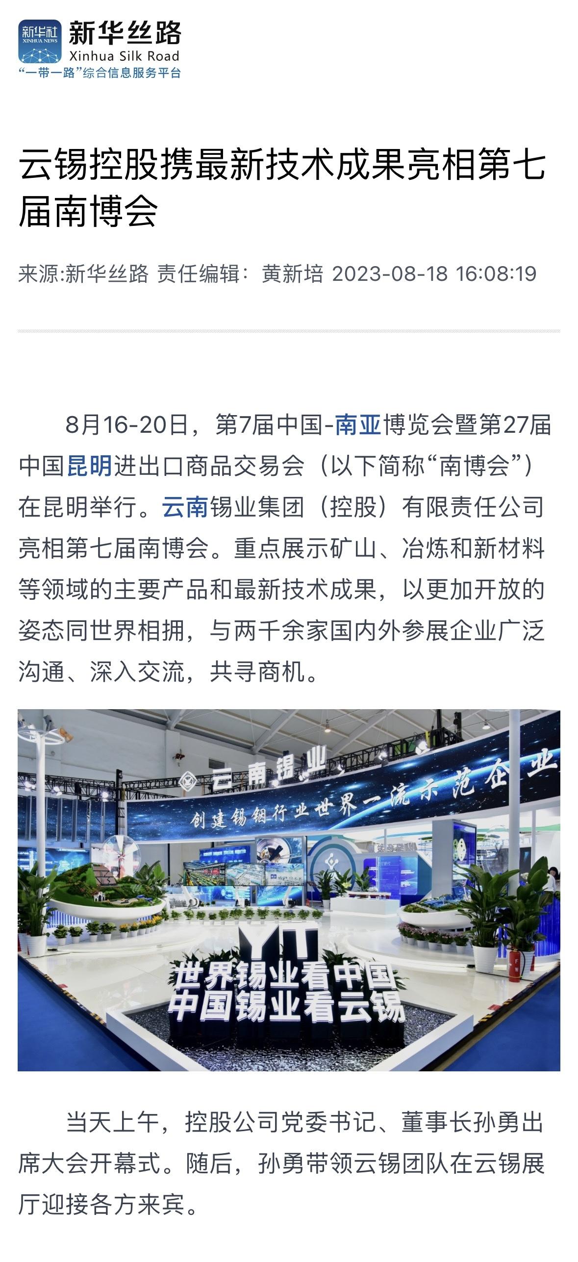 來源:新華財經(jīng)、新華絲路、中國網(wǎng)、云南國資、云南網(wǎng)、云南經(jīng)濟新聞網(wǎng)、中國有色金屬報