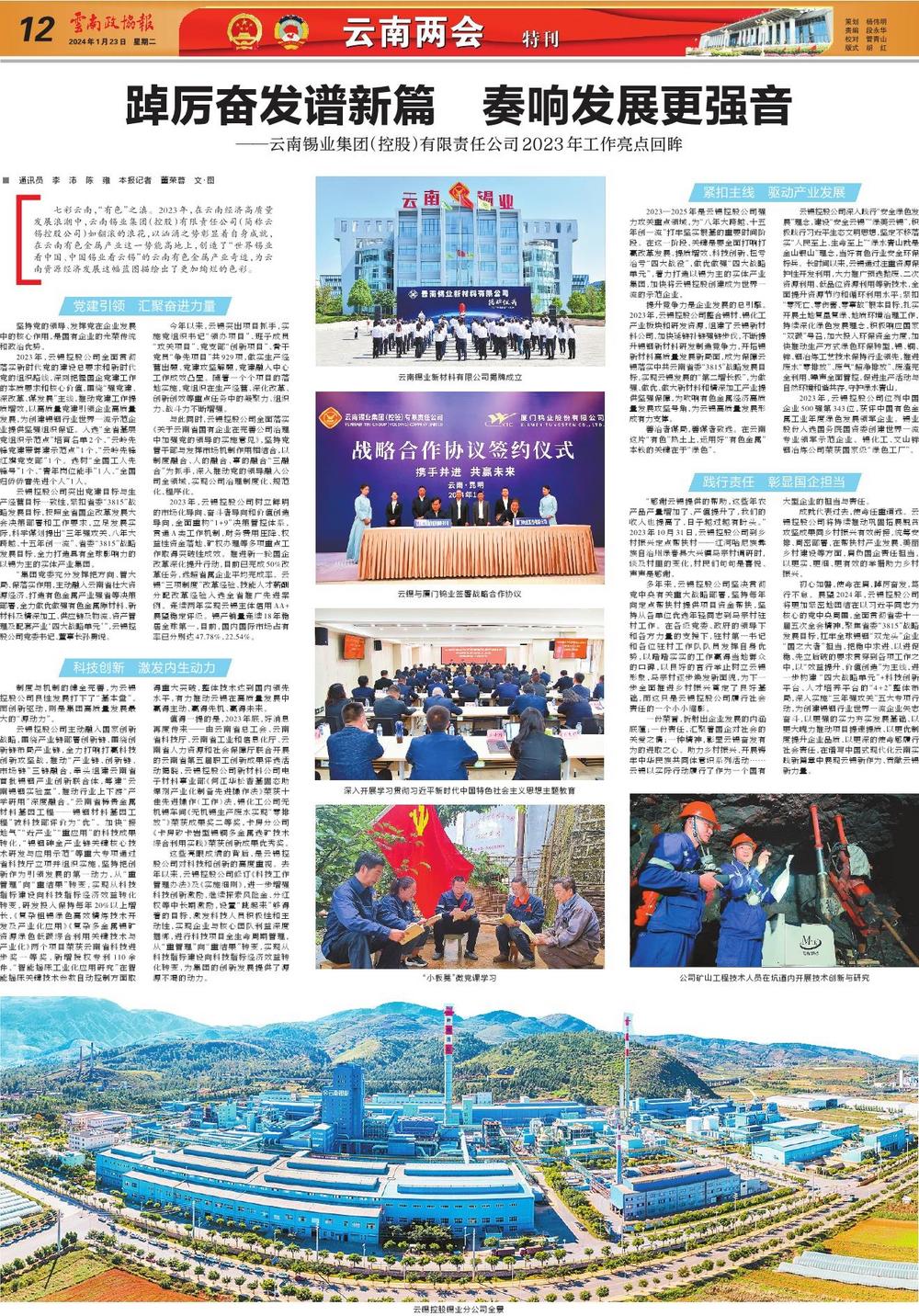 七彩云南,“有色”之滇。2023年,在云南經(jīng)濟高質量發(fā)展浪潮中,云南錫業(yè)集團(控股)有限責任公司(簡稱云錫控股公司)如翻滾的浪花,以洶涌之勢彰顯著自身成就,在云南有色金屬產(chǎn)業(yè)這一勢能高地上,創(chuàng)造了“世界錫業(yè)看中國、中國錫業(yè)看云錫”的云南有色金屬產(chǎn)業(yè)奇跡,為云南資源經(jīng)濟發(fā)展這幅藍圖描繪出了更加絢爛的色彩。