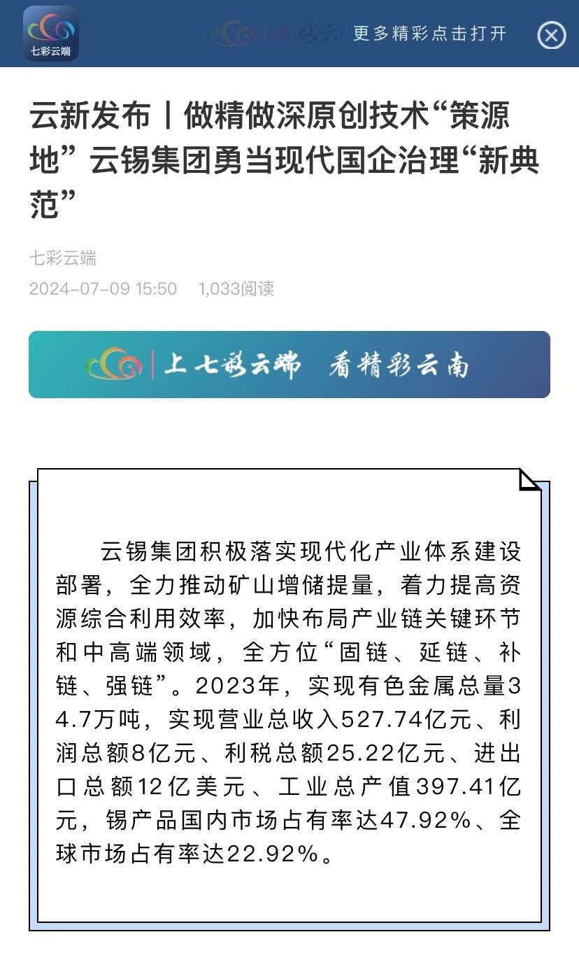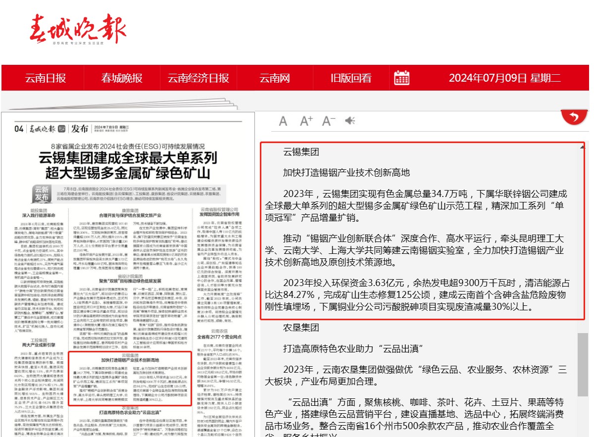 來源:人民日報、新華財經(jīng)、中國環(huán)境監(jiān)察、云南新聞聯(lián)播、云南發(fā)布、云南網(wǎng)、云南經(jīng)濟日報、云南政協(xié)報、中國有色金屬報、有色新聞、春城晚報、都市時報