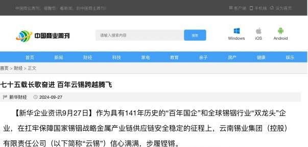 來源:新華企業(yè)咨詢、新華財(cái)經(jīng)、新華絲路、云南日?qǐng)?bào)、中國企業(yè)網(wǎng)、中國企業(yè)在線、中國商業(yè)經(jīng)濟(jì)、中國都市網(wǎng)、中國東方在線、中國發(fā)展網(wǎng)、財(cái)?shù)乐袊⒅袊虡I(yè)周刊、中國名企新聞網(wǎng)、中國產(chǎn)業(yè)經(jīng)濟(jì)信息網(wǎng)、中國企業(yè)信息網(wǎng)、中國企訊網(wǎng)、中國企業(yè)資訊網(wǎng)、中國財(cái)經(jīng)報(bào)、中國第一時(shí)間、中國新聞熱線、中國財(cái)富網(wǎng)、中國經(jīng)濟(jì)新聞網(wǎng)、云南省礦業(yè)協(xié)會(huì)、搜狐號(hào)、騰訊新聞、每日資訊、今日頭條、新浪網(wǎng)、世界之窗、焦點(diǎn)世界、環(huán)球資訊網(wǎng)、環(huán)球TIME、今日朝聞、網(wǎng)易號(hào)、中華網(wǎng)