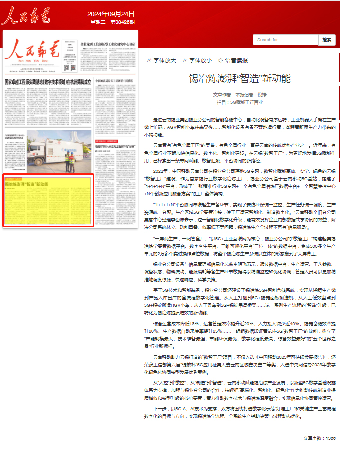 “‘1+1+1+N’平臺協(xié)同串聯(lián)起生產(chǎn)各環(huán)節(jié),實現(xiàn)了安防環(huán)保統(tǒng)一監(jiān)控、生產(chǎn)任務(wù)統(tǒng)一調(diào)度、生產(chǎn)資源統(tǒng)一分配。生產(chǎn)區(qū)域5G全要素連接,使工廠運營智能化、制造數(shù)字化?!痹颇弦苿觽€舊分公司集客中心經(jīng)理李岱原表示,這一智能化數(shù)字化升級,能有效發(fā)揮企業(yè)內(nèi)部數(shù)據(jù)共享協(xié)同的效益,解決公司系統(tǒng)林立、功能重疊、效率低下等問題,錫冶煉生產(chǎn)全過程不再有“信息孤島”。
