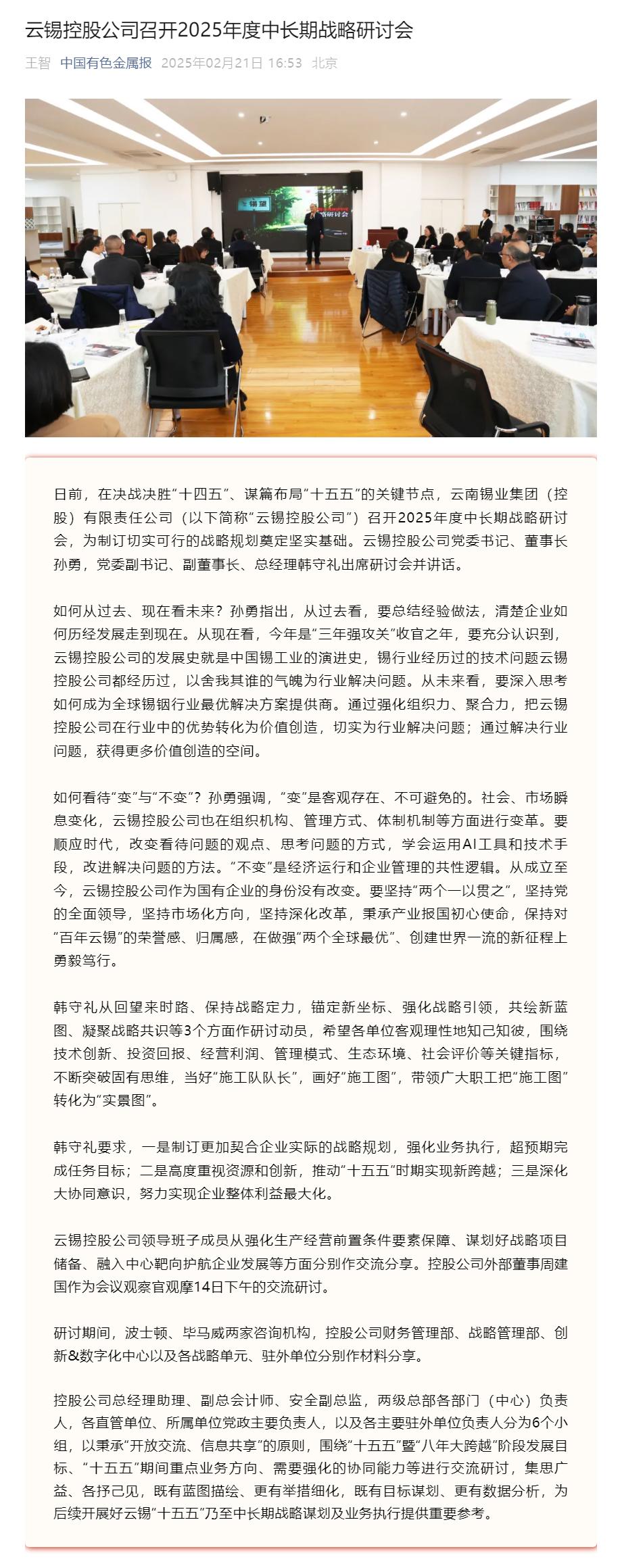 來(lái)源:中國(guó)有色金屬報(bào)、中國(guó)有色網(wǎng)、云南政協(xié)報(bào)