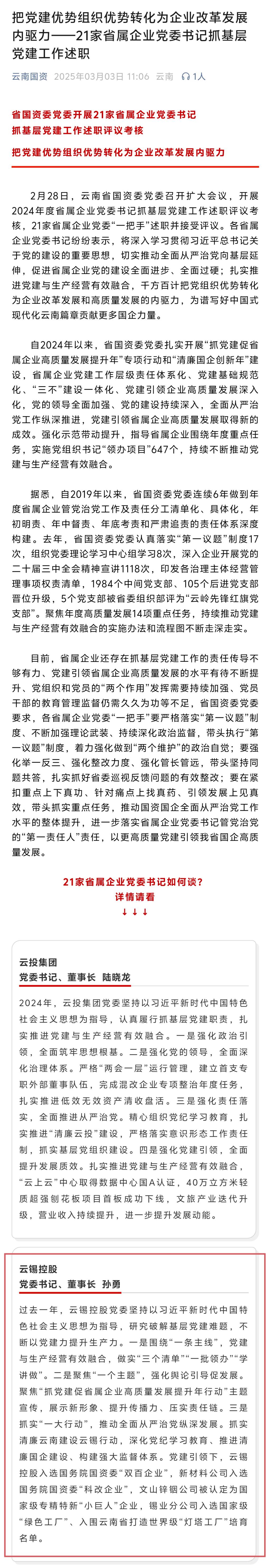 據(jù)悉,自2019年以來,省國資委黨委連續(xù)6年做到年度省屬企業(yè)管黨治黨工作及責(zé)任分工清單化、具體化,年初明責(zé)、年中督責(zé)、年底考責(zé)和嚴(yán)肅追責(zé)的責(zé)任體系深度構(gòu)建。去年,省國資委黨委認(rèn)真落實(shí)“第一議題”制度17次,組織黨委理論學(xué)習(xí)中心組學(xué)習(xí)8次,深入企業(yè)開展黨的二十屆三中全會(huì)精神宣講1118次,印發(fā)各治理主體經(jīng)營管理事項(xiàng)權(quán)責(zé)清單,1984個(gè)中間黨支部、105個(gè)后進(jìn)黨支部晉位升級(jí),5個(gè)黨支部被省委組織部評(píng)為“云嶺先鋒紅旗黨支部”。聚焦年度高質(zhì)量發(fā)展14項(xiàng)重點(diǎn)任務(wù),持續(xù)推動(dòng)黨建與生產(chǎn)經(jīng)營有效融合的實(shí)施辦法和流程圖不斷走深走實(shí)。