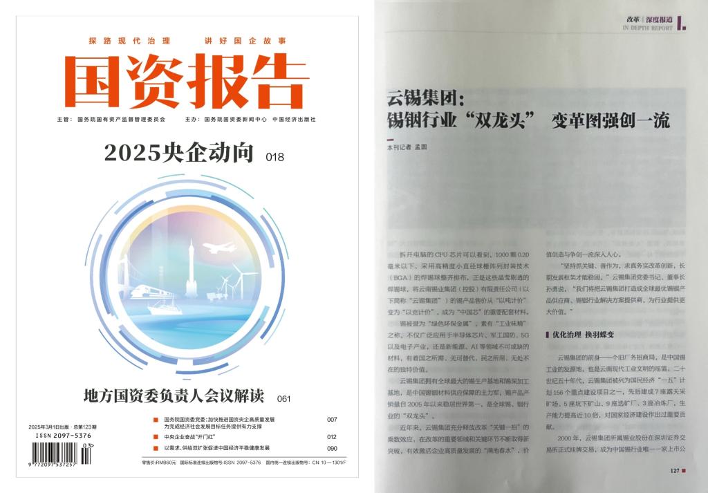 “云錫集團有資源、有技術(shù)、有底蘊。恰逢近年來人工智能和新能源等領(lǐng)域持續(xù)發(fā)展,市場供需基本面強勁,改革進一步激發(fā)了企業(yè)的活力和動力。此時要搶抓機遇,不斷提升價值創(chuàng)效能力和行業(yè)引領(lǐng)力?!痹棋a集團所屬錫業(yè)股份董秘楊佳煒對《國資報告》記者說。