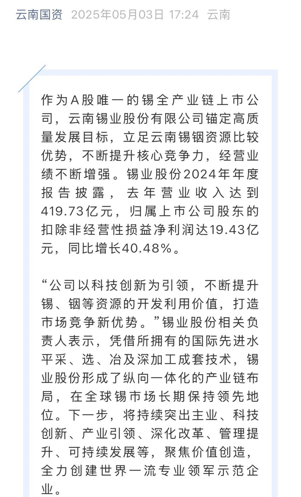 錫業(yè)股份扣非凈利潤增長超40%——聚焦價值創(chuàng)造提升核心競爭力