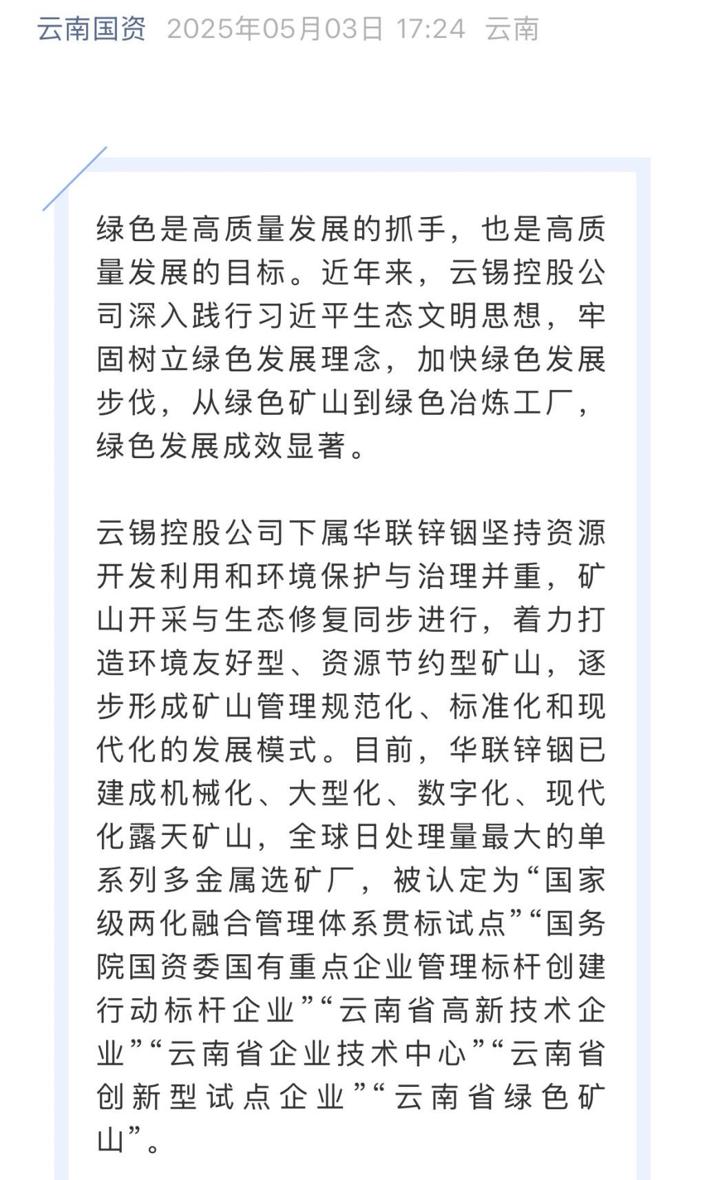 云錫控股:立足資源稟賦 構(gòu)筑世界一流錫銦產(chǎn)供鏈