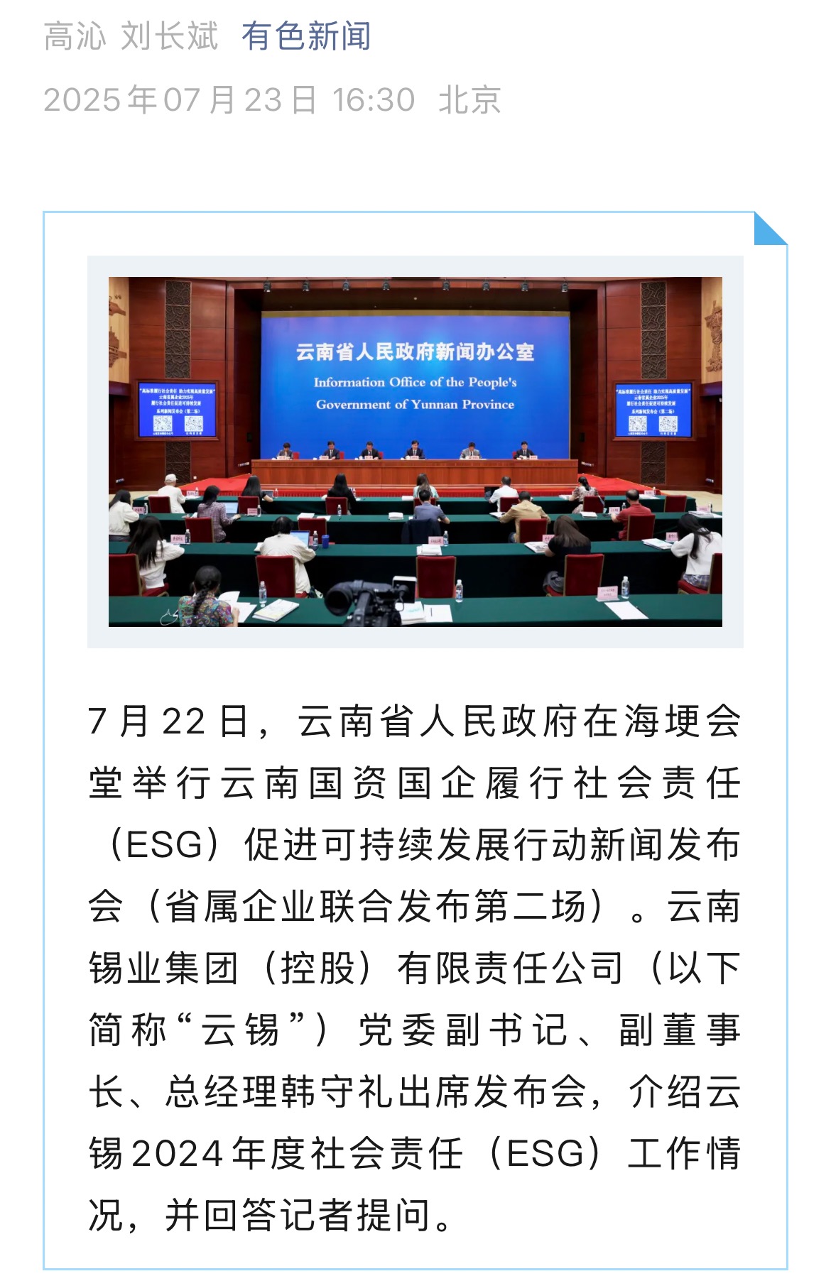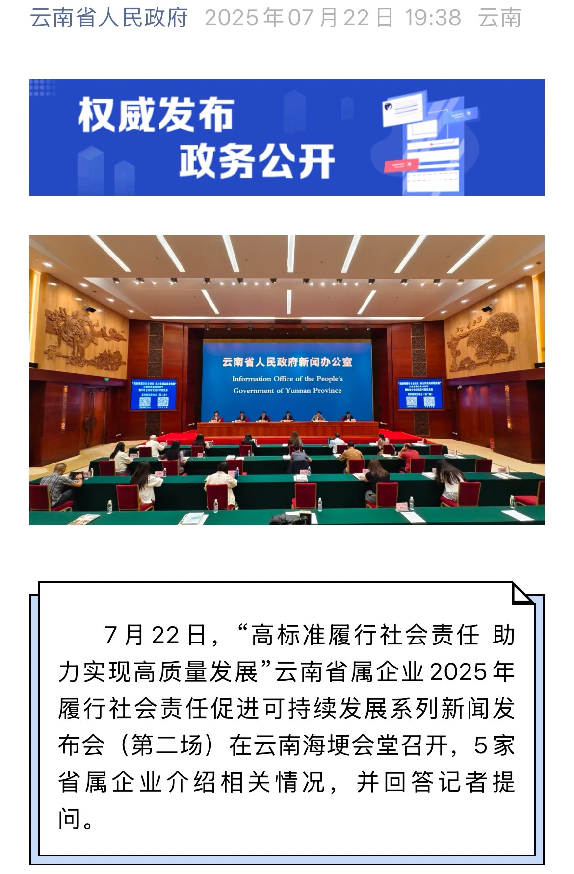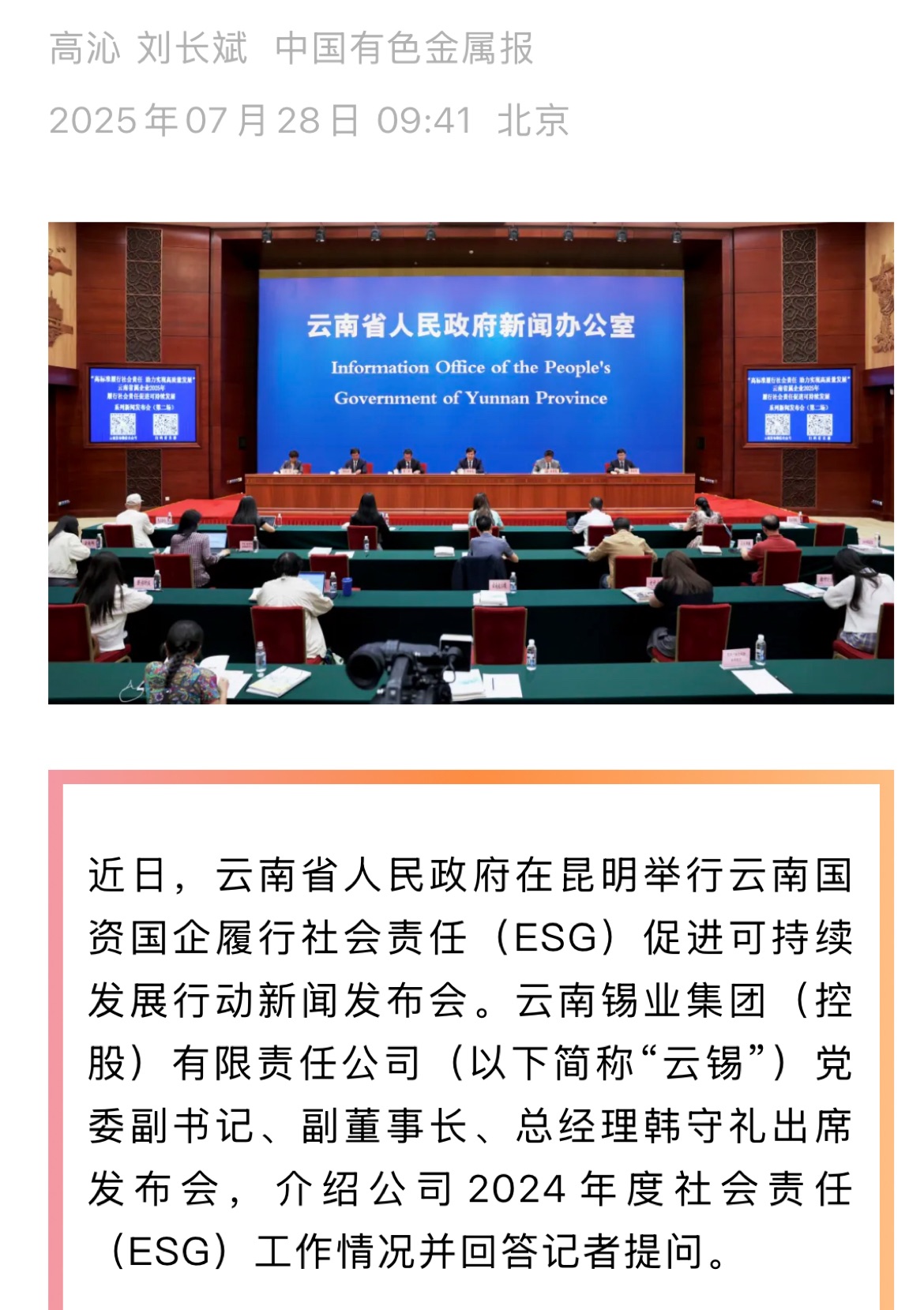 來源:央廣網(wǎng)、央視影音、新華網(wǎng)、新華時訊、中國日報網(wǎng)、中國新聞網(wǎng)、中國網(wǎng)云南新聞聯(lián)播、云南衛(wèi)視晚間新聞、云南發(fā)布、云南日報、云南日報-云新聞、云南網(wǎng)、七彩云端、云南省人民政府、云嶺先鋒網(wǎng)、云南國資、云南政協(xié)報、有色金屬報、有色新聞、騰訊新聞、今日頭條、搜狐、網(wǎng)易、新浪微博、新浪財經(jīng)、都市時報、國泰君安、昆明日報、春城晚報、昆明信息港、開屏新聞