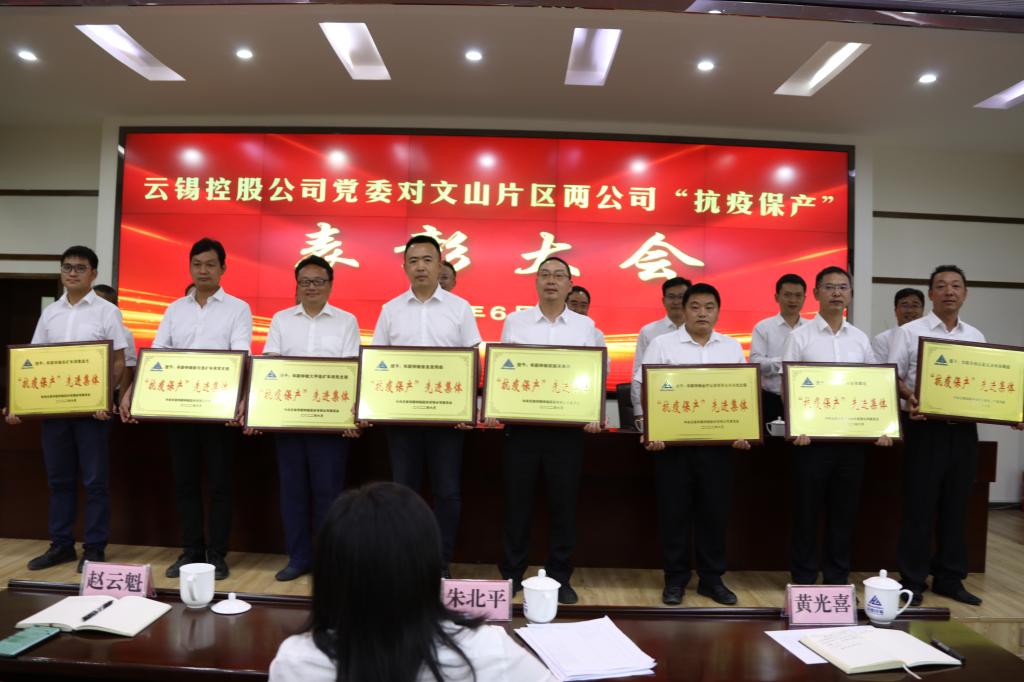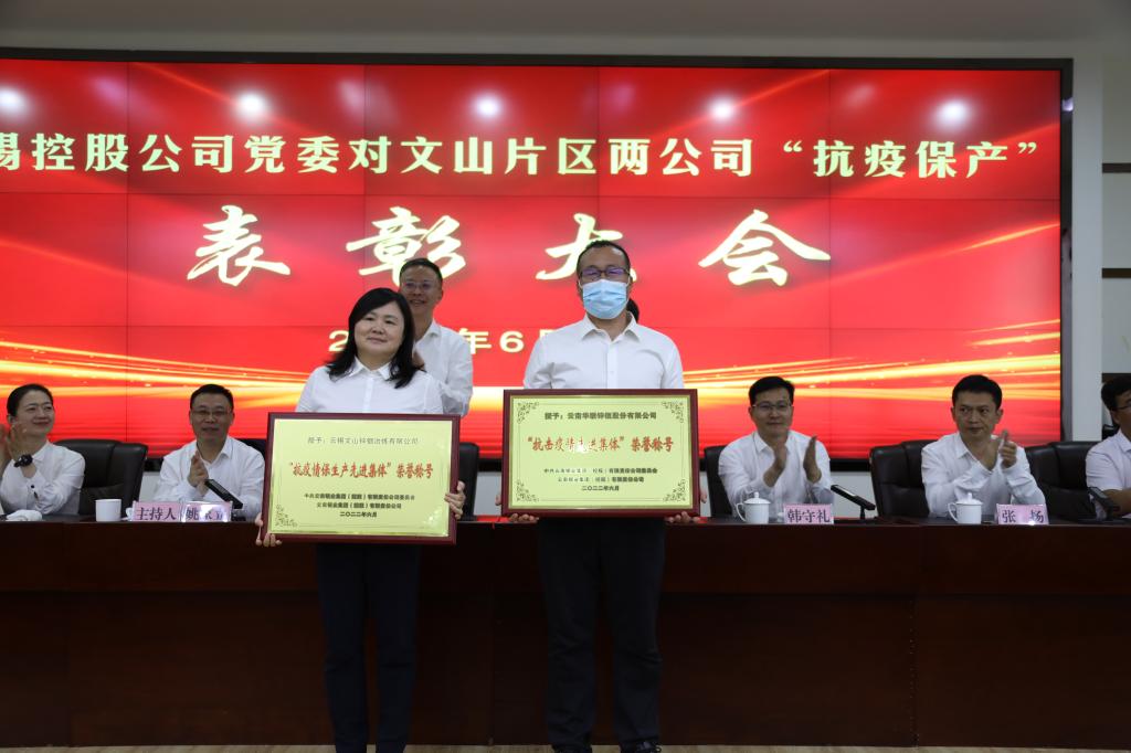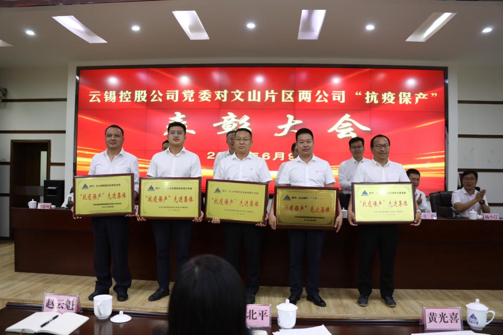 千難萬(wàn)險(xiǎn)何所懼,大戰(zhàn)大考煉真金。6月9日下午,云錫控股公司黨委對(duì)云錫文山片區(qū)兩公司“抗疫保產(chǎn)”表彰大會(huì)在華聯(lián)鋅銦五樓會(huì)議室隆重召開(kāi),總結(jié)回顧今年4月文山兩公司不平凡的疫情防控阻擊戰(zhàn)、保供保鏈攻堅(jiān)戰(zhàn)歷程,進(jìn)一步動(dòng)員激勵(lì)兩公司干部職工弘揚(yáng)偉大抗疫精神,積極投身云錫打造全球錫銦行業(yè)全產(chǎn)業(yè)鏈“獨(dú)角獸”、打造文山片區(qū)百億鋅銦產(chǎn)業(yè)的新征程。