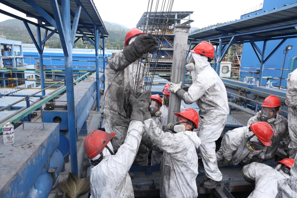 與往年不同的是,此次檢修本著“合理安排項(xiàng)目,縮短停產(chǎn)時(shí)間,細(xì)化檢修程序,確保檢修安全”工作思路,抓住關(guān)鍵環(huán)節(jié),加強(qiáng)部門聯(lián)動(dòng),建立完善重點(diǎn)項(xiàng)目推進(jìn)機(jī)制,切實(shí)做到急事急辦、特事特辦,確保實(shí)現(xiàn)“一次全面檢修,長期平穩(wěn)運(yùn)行”目標(biāo),首次實(shí)現(xiàn)錫行業(yè)爆破拆除爐底爐瘤及耐火材料。