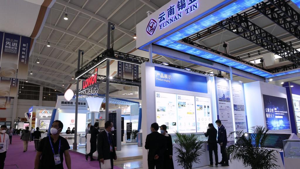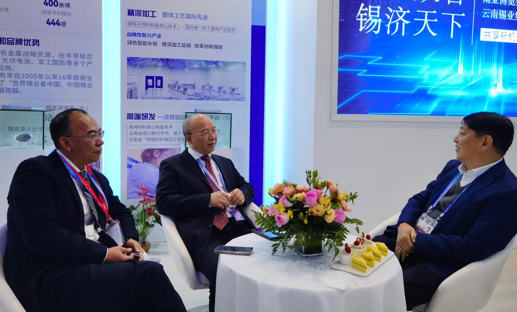 當(dāng)天上午,云錫控股公司黨委書記、董事長(zhǎng)孫勇出席大會(huì)開幕式。隨后,孫勇與中國銅業(yè)黨委書記、董事長(zhǎng)許波,云南省能源投資集團(tuán)總裁、副董事長(zhǎng)謝一華參觀云錫展區(qū),并向來賓介紹云錫新材料產(chǎn)業(yè)發(fā)展情況。孫勇談到,云錫積極用好國際國內(nèi)“兩個(gè)市場(chǎng)”,通過精深加工延鏈,不斷鞏固錫產(chǎn)業(yè)鏈龍頭地位。云錫將借助南博會(huì)這一越來越開放的平臺(tái),在建設(shè)面向南亞、東南亞輻射中心的時(shí)代征程中展現(xiàn)國企擔(dān)當(dāng),依托全球錫資源,立足科技創(chuàng)新,不斷提升高質(zhì)量發(fā)展內(nèi)驅(qū)動(dòng)力,為百年云錫再創(chuàng)輝煌提供堅(jiān)實(shí)保障。
