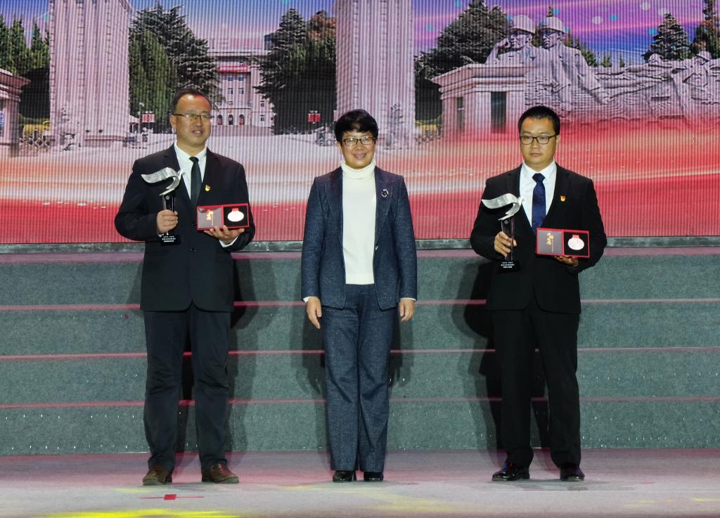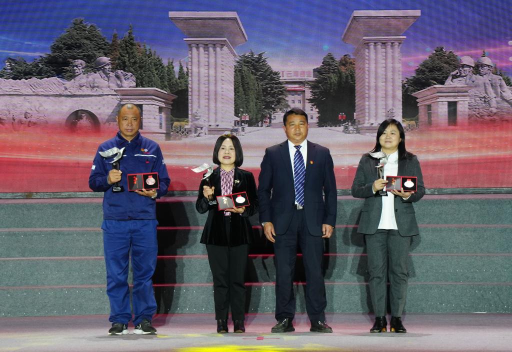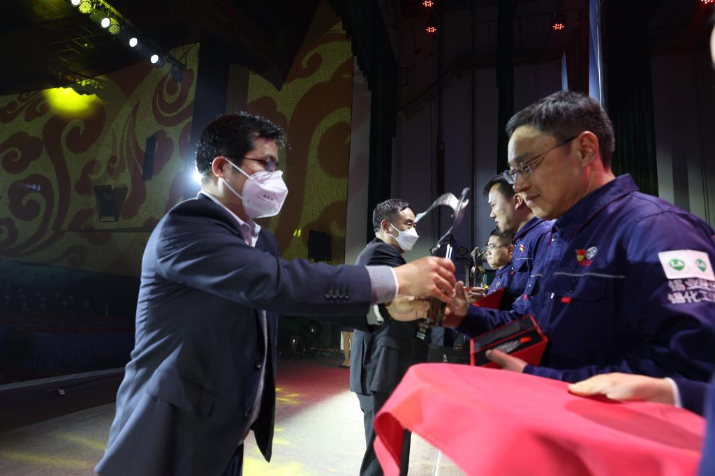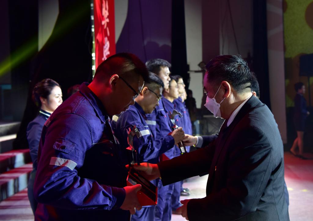(控股公司黨委常委、副總經(jīng)理韓守禮,財務(wù)總監(jiān)李向丹為“云錫之鷹”十佳崗位能手頒獎)