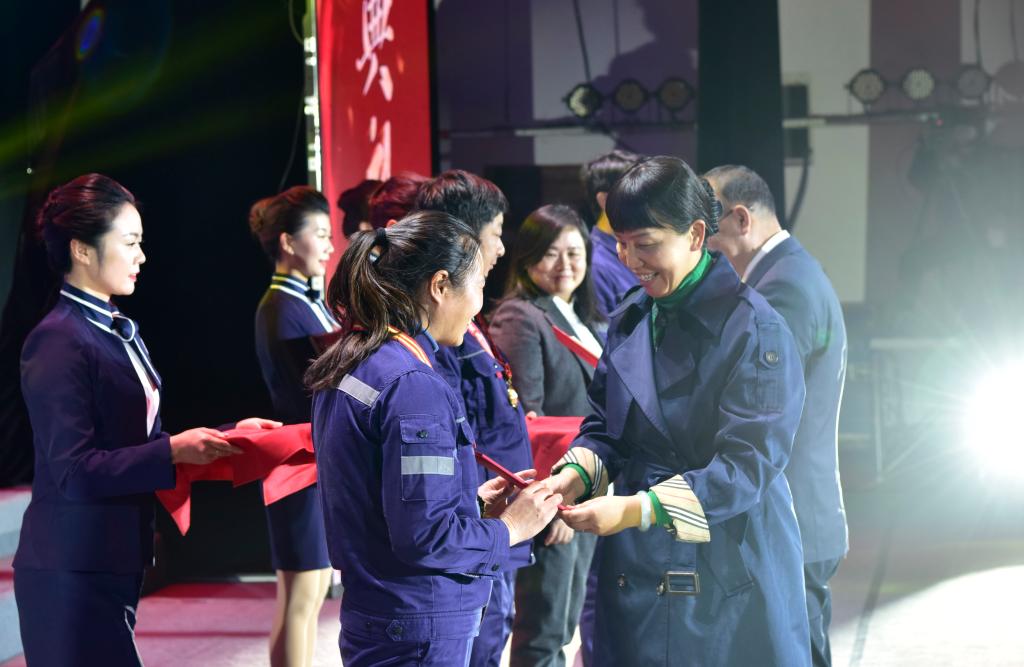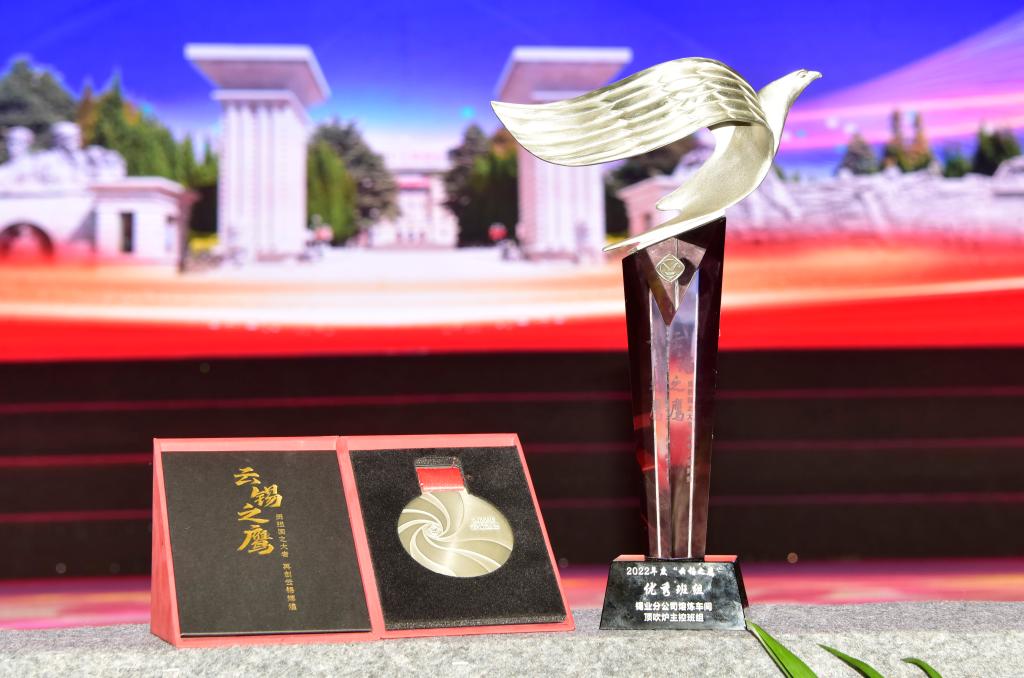 (控股公司黨委常委、組織人力部部長吳君為“云錫之鷹”十大工匠頒獎)