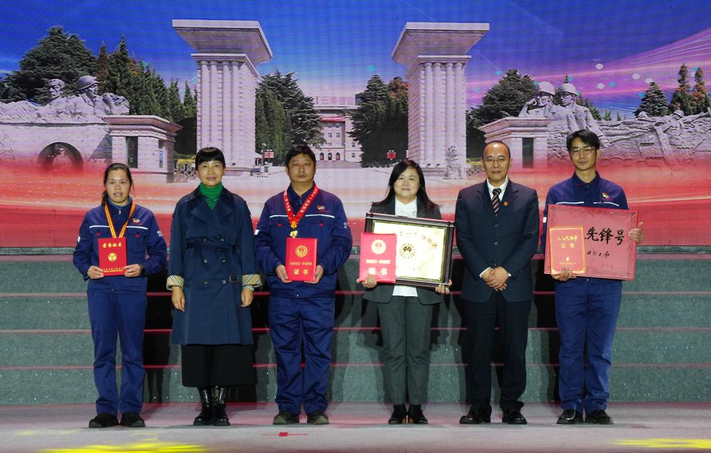 (紅河州委副書記、州長羅萍與孫勇為云南省“三八紅旗手”、云南省五一勞動獎?wù)?、云南省五一勞動獎狀以及全國工人先鋒號頒獎)