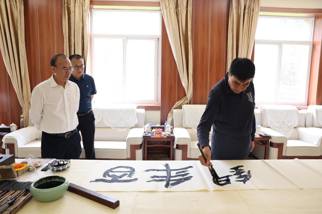 觀展現(xiàn)場,杜建民揮毫潑墨,現(xiàn)場創(chuàng)作,一時墨香四溢,把一幅幅遒勁有力、氣韻生動的書法作品送給了在場的干部職工。