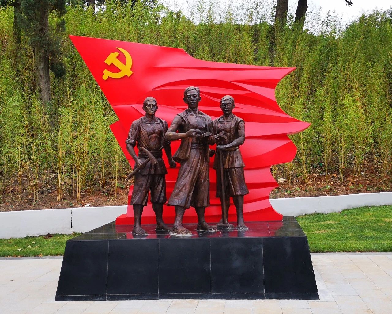 戴德明(左)、李鑫(中)、楊逢春(右)三烈士群雕。