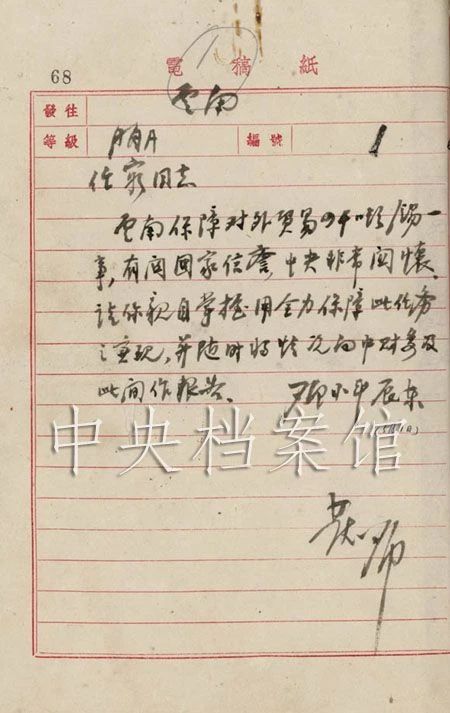 鄧小平親擬文電致云南省委書(shū)記、省軍政委員會(huì)副主席宋任窮。(圖源:中央檔案館)
