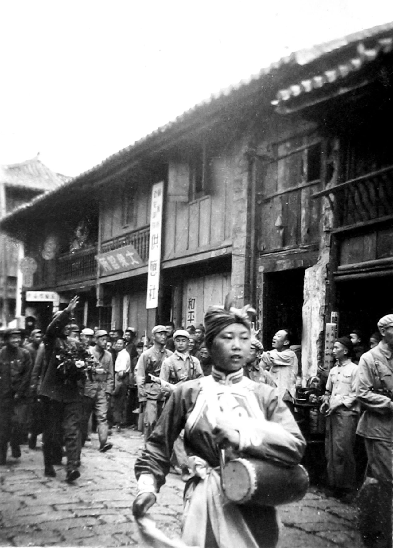 1950年,市民喜迎解放軍進(jìn)入個(gè)舊城。