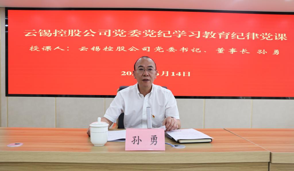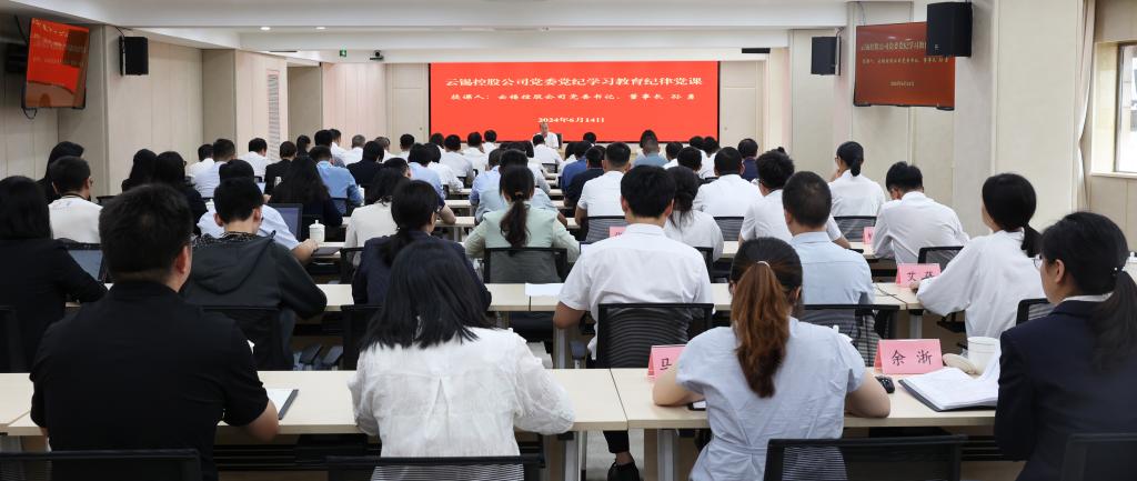 6月14日下午,控股公司黨委在昆明總部14樓會議室開展黨紀(jì)學(xué)習(xí)教育紀(jì)律黨課??毓晒军h委書記、董事長孫勇作題為《知紀(jì)于心 立紀(jì)于身 化紀(jì)于行》的黨紀(jì)學(xué)習(xí)教育專題黨課。