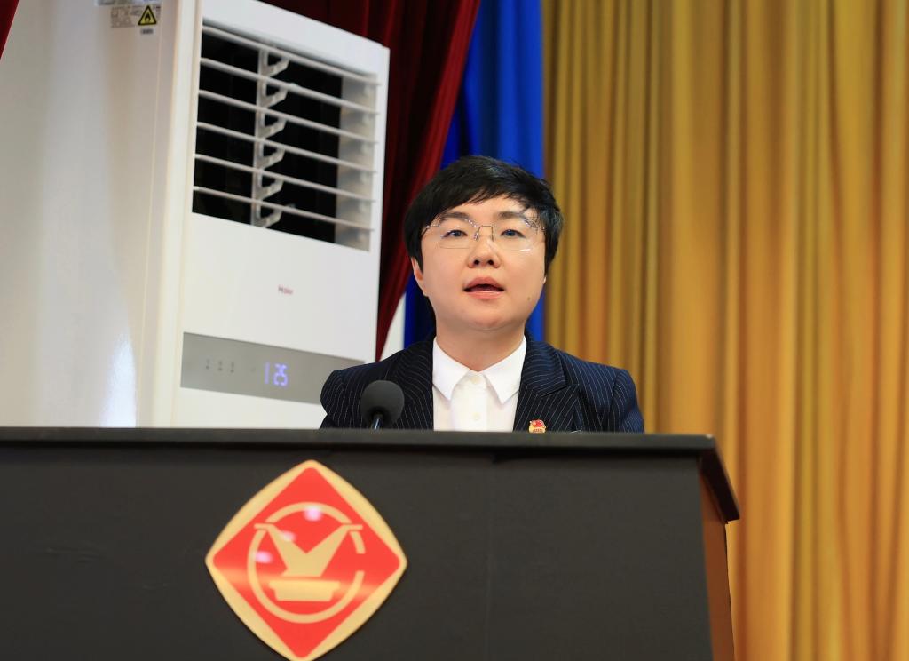控股公司團委書記吳雯雯代表控股公司第十四屆團委向大會作題為《高舉旗幟跟黨走 挺膺擔(dān)當(dāng)建新功 在奮力創(chuàng)建錫銦行業(yè)世界一流企業(yè)的生動實踐中貢獻(xiàn)青春力量》的工作報告。