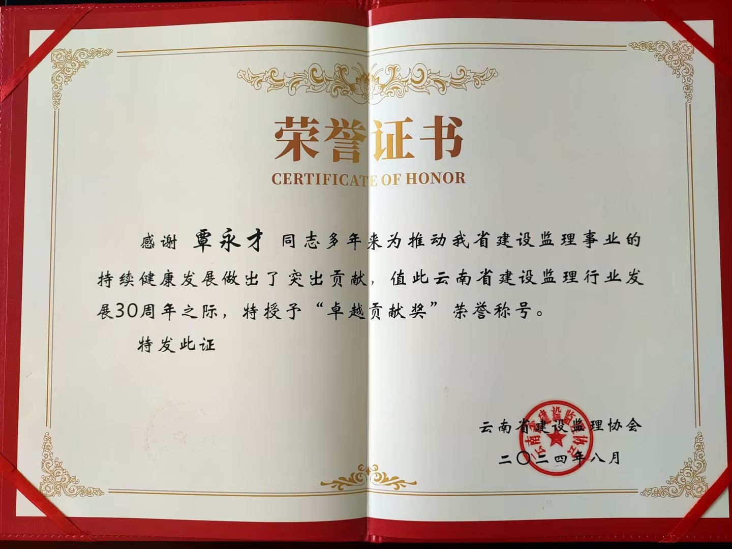 云錫監(jiān)理公司于1994年成立,是云南省最早成立的工程監(jiān)理企業(yè)之一。覃永才現(xiàn)任公司總經(jīng)理,系工程監(jiān)理高級(jí)工程師、注冊(cè)監(jiān)理工程師、注冊(cè)一級(jí)建造師,有著豐富的工程監(jiān)理技術(shù)實(shí)踐經(jīng)驗(yàn)。任職以來,他帶領(lǐng)團(tuán)隊(duì)內(nèi)強(qiáng)管理、外拓市場(chǎng),提升監(jiān)理技術(shù)服務(wù)質(zhì)量,以精益求精的工匠精神,做品質(zhì)先鋒、樹一流形象、筑精品工程,為云錫項(xiàng)目建設(shè)和地方產(chǎn)業(yè)發(fā)展提供技術(shù)支持和保障,為全省建設(shè)監(jiān)理事業(yè)持續(xù)健康發(fā)展作出了突出貢獻(xiàn)。